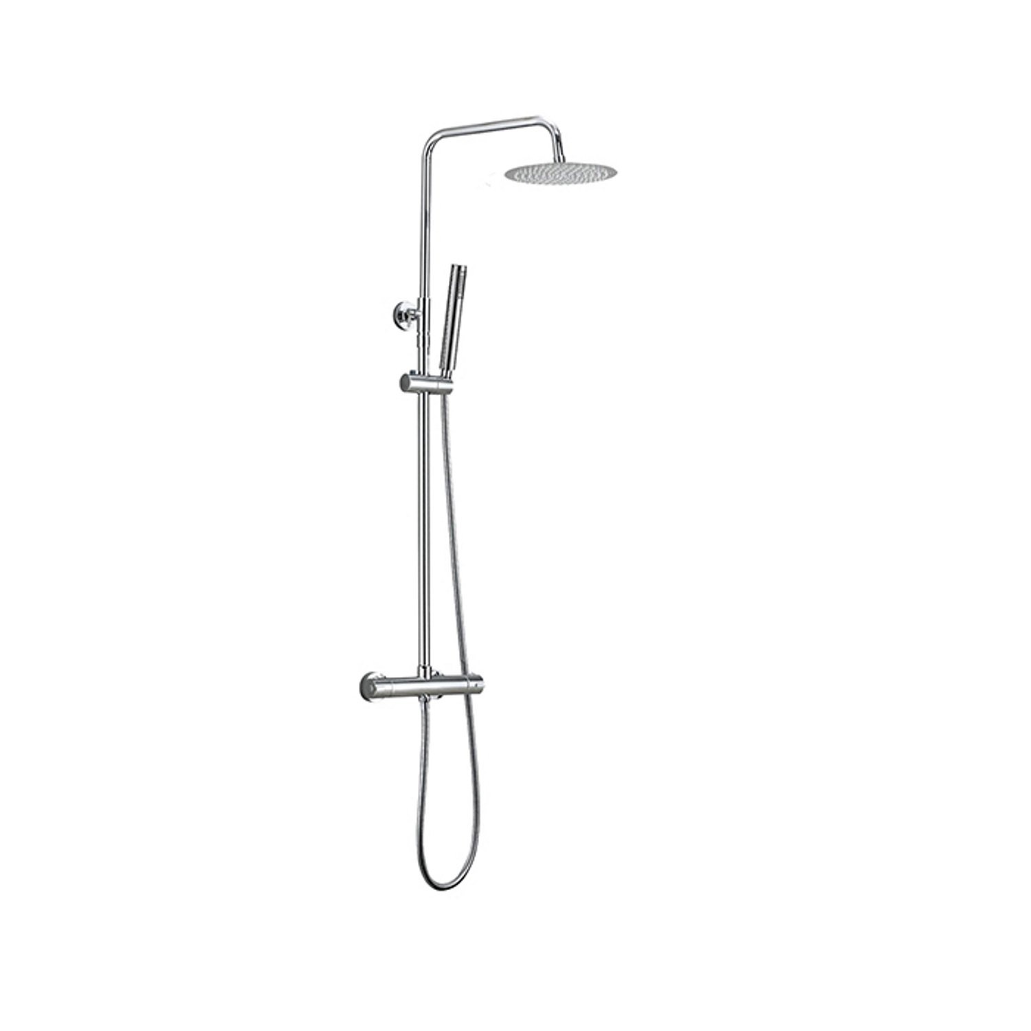 Deze opbouw regendoucheset van de Wiesbaden Caral-Eco Twenty serie is een elegante toevoeging voor uw badkamer. De set bestaat uit een regendouchekop, glijstang, handdouche, doucheslang en thermostatische kraan. De gehele set is uitgevoerd in kleur chroom. Hierdoor past de kraan ongedwongen in ieder interieur. Chroom is een hele neutrale kleur die vrijwel nooit stoort bij de samenstelling van een badkamer.