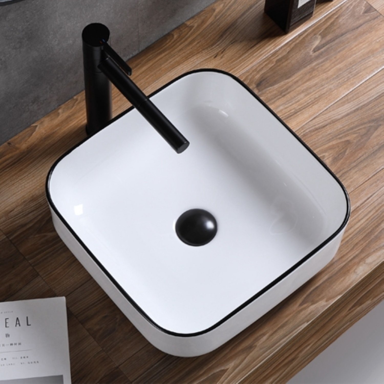 Opbouw Waskom Boss & Wessing Blitz 40x40x14 cm Keramiek Wit met Zwarte Lijn ✓ Alle A-merken & Scherpe prijzen ✓ Bestel direct bij ons Online