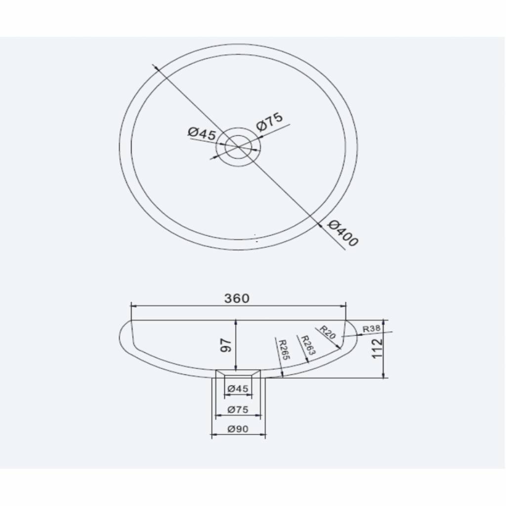Deze opbouw waskom is geproduceerd in de kleur mat wit en heeft een ronde vorm. De hoogte van deze waskom bedraagt 11,2 cm en de diameter 40 cm. Het matte, fluweelachtige oppervlak van de wasbak voelt prettig aan en is makkelijk schoon te maken en te onderhouden.