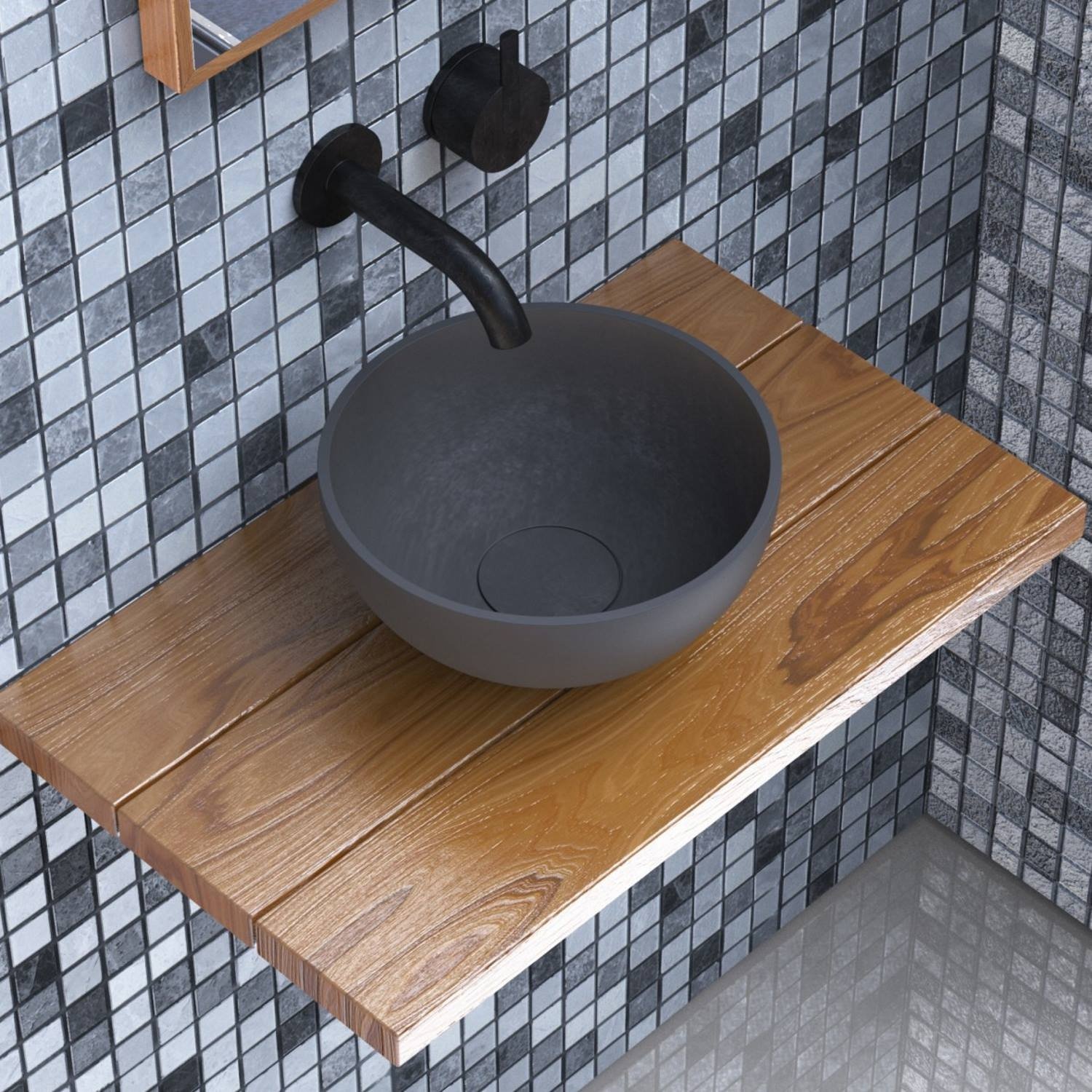 Deze opbouw waskom heeft een matte donker grijze kleur en een dunne rand van 8 mm. Het matte, fluweelachtige oppervlak van de wasbak voelt prettig aan en is makkelijk schoon te maken en te onderhouden.