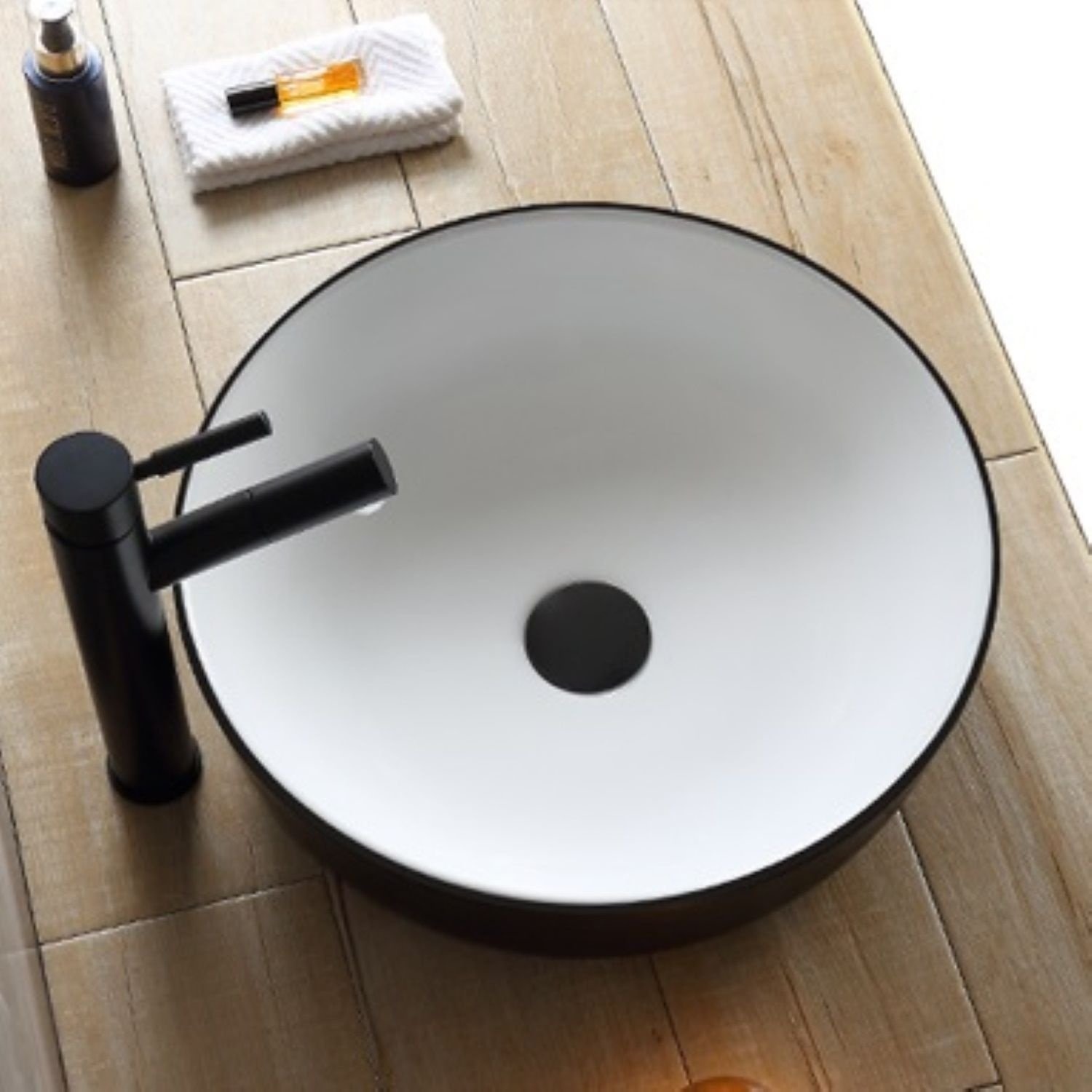 Opbouw Waskom Rond Boss & Wessing Pura 42x13 cm Wit met Zwarte Buitenkant ✓ Alle A-merken & Scherpe prijzen ✓ Bestel direct bij ons Online