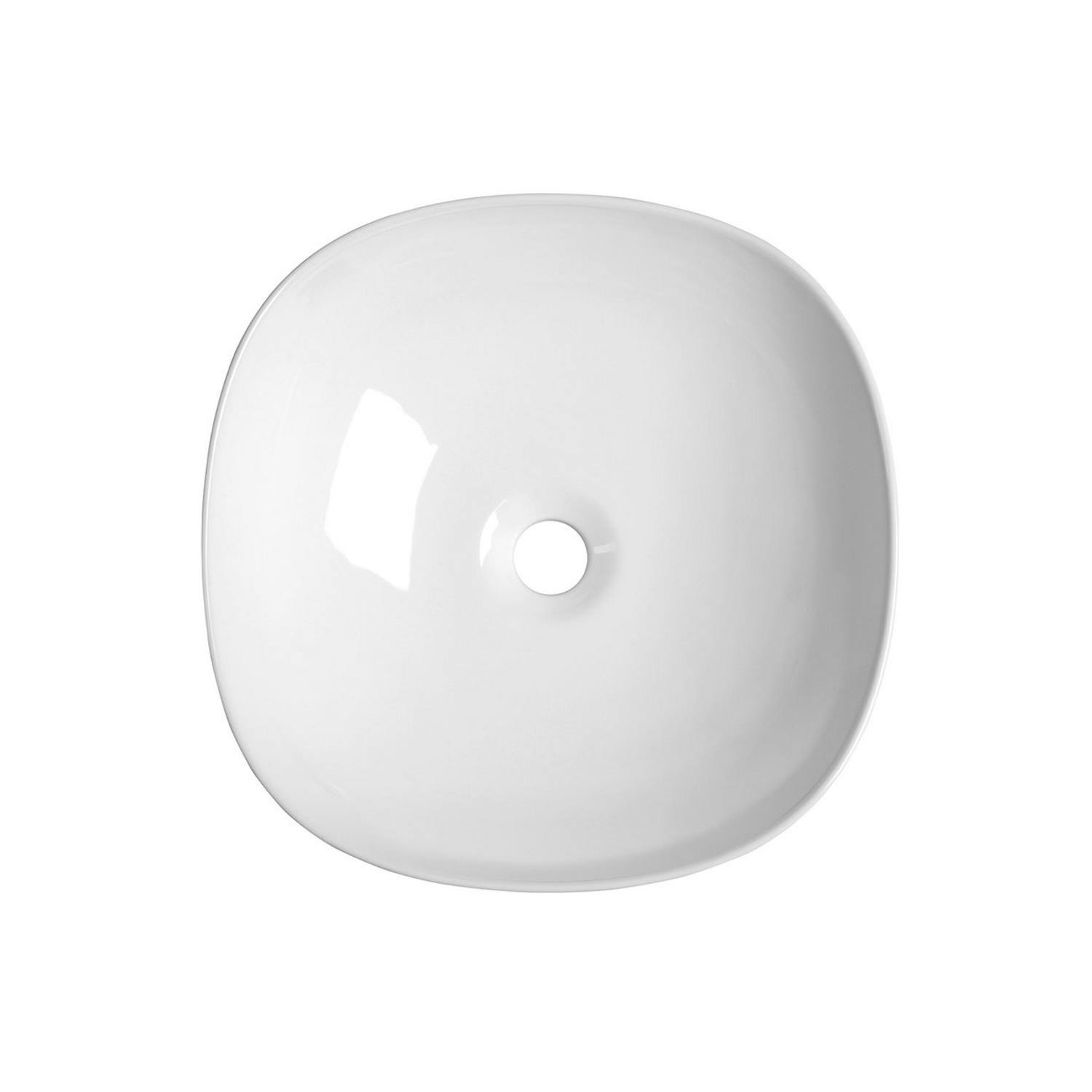 Met deze vierkante witte opbouw waskom van Sapho geeft u uw badkamer een hippe uitstraling. De keramieken waskom heeft een breedte van 42 cm, een diepte van 42 cm en is 14.5 cm hoog.