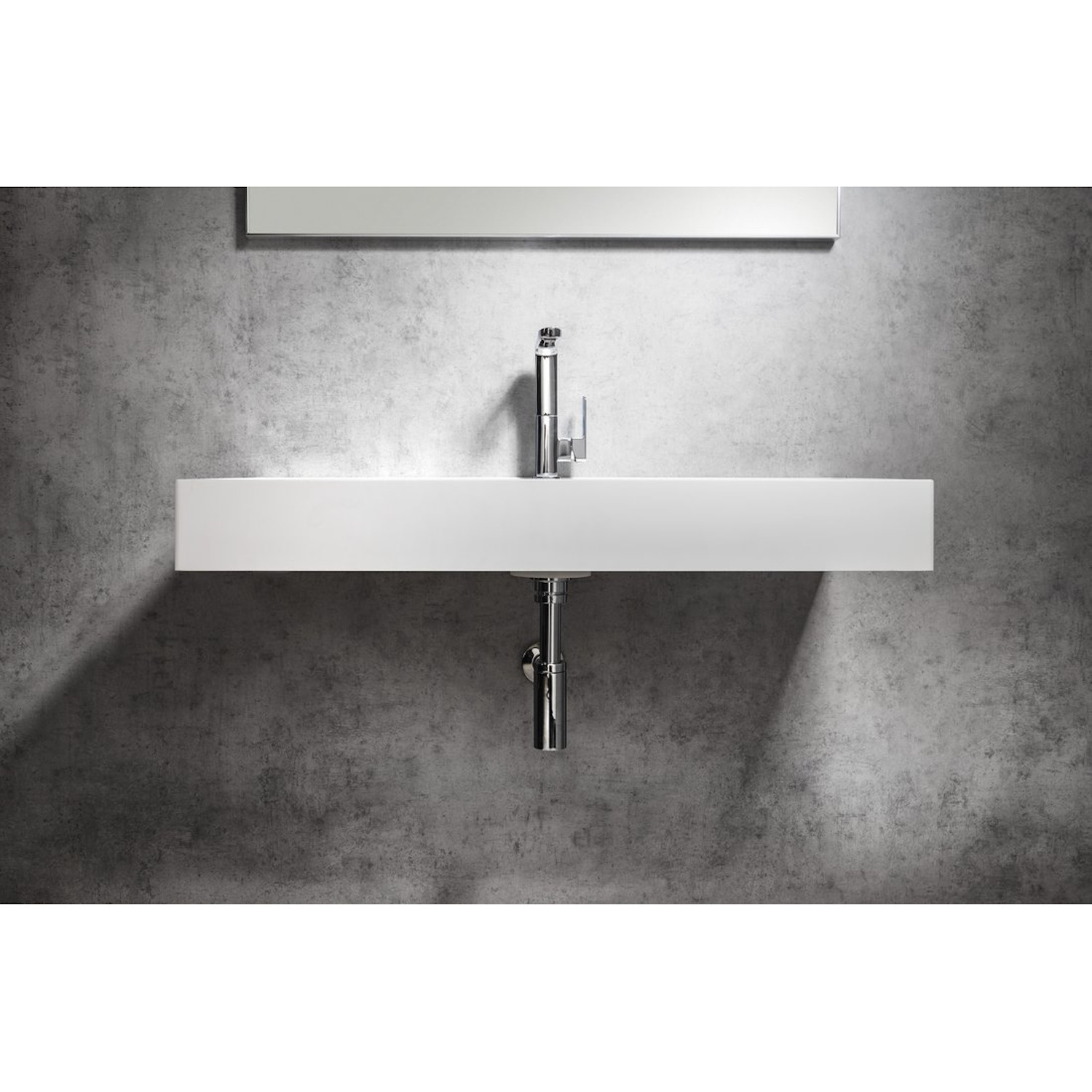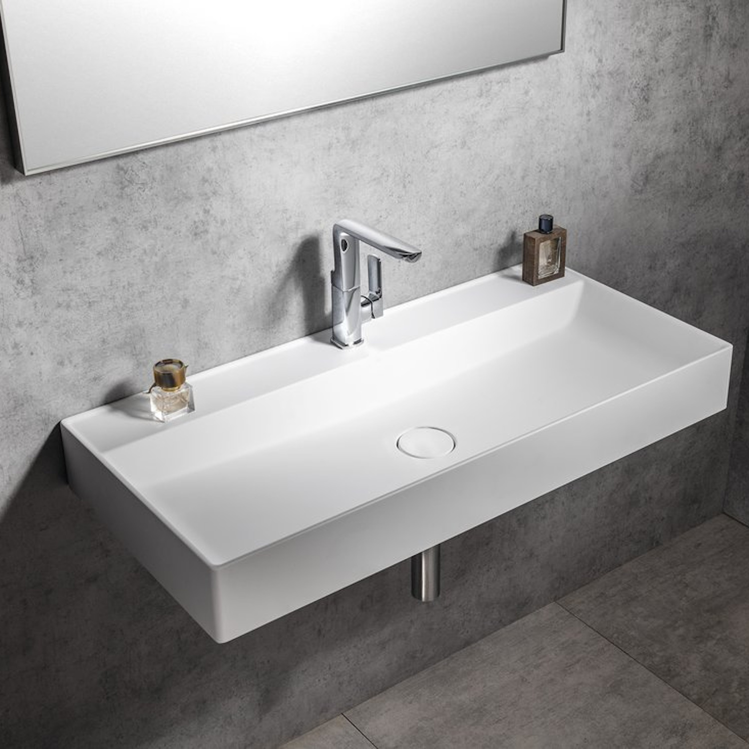 De wastafel heeft een mooie afmeting van 100 cm breed en 47 cm diep. In het midden van de bovenrand zit een kraangat verwerkt. De wastafel is gemaakt van Cast Marble. Dit lijkt op echt marmer, maar is door mensen gemaakt. Het voordeel van dit materiaal is dat het bij schade te repareren is, in tegenstelling tot keramiek. Het materiaal is gemakkelijk te onderhouden.