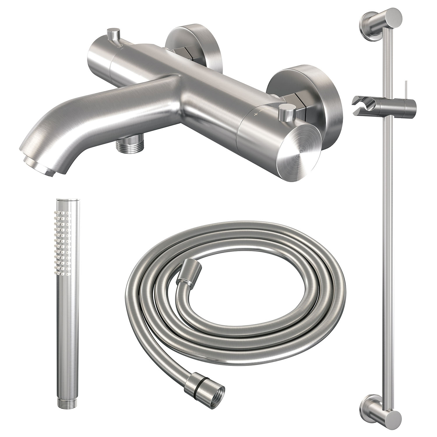 Deze bijzondere kraan van het merk Brauer behoort tot de Brushed Edition serie en is een directe blikvanger in uw badkamer. De opbouw bad- en douchekraan is gemaakt van messing en kent een schitterende afwerking in de kleur geborsteld Brushed. De thermostatische kraan is uitgerust met een omstelmogelijkheid en is voorzien van twee knoppen waarmee u de temperatuur en de kracht van de waterstraal bepaalt. Aan de onderzijde is de kraan voorzien van een aansluitpunt waarop u een handdouche aan kunt sluiten. Ook krijg u een glijstang met een doucheslang en een handdouche.