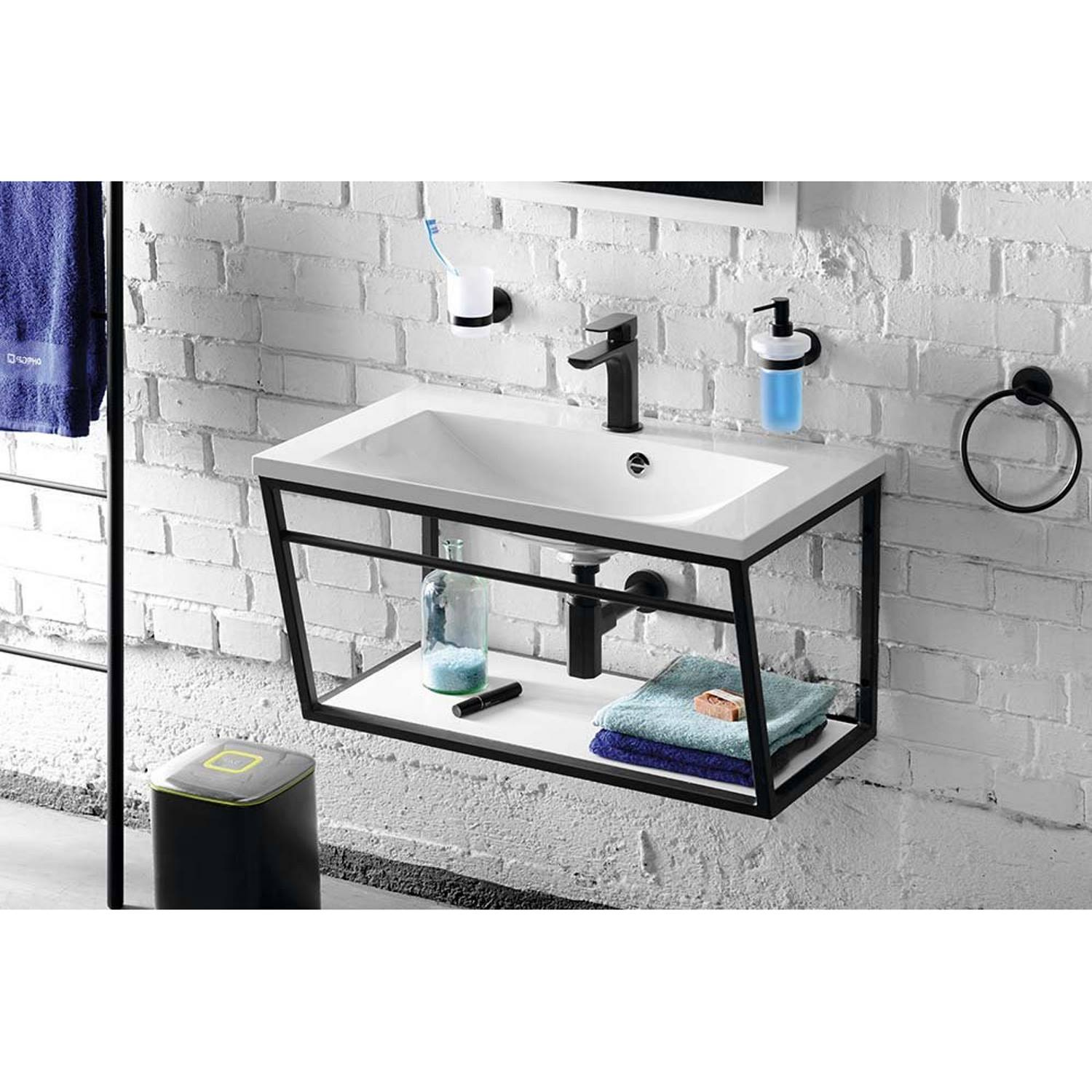 De mat witte ophangbeugel is een onderdeel voor het compleet maken van een wastafel meubel. De ophangbeugel is speciaal voor de MA060 wastafel. U bevestigt de ophangbeugel aan de muur zodat u de wastafel erop kunt leggen. De beugel is van roestvrij staal in de kleur mat wit. Aan de voorkant heeft het meubel een ronde beugel die ideaal geschikt is voor bijvoorbeeld een handdoek op te hangen. De ophangbeugel wordt meegeleverd met een MDF plank, deze plank is ideaal om uw badkamer accessoires op te zetten.