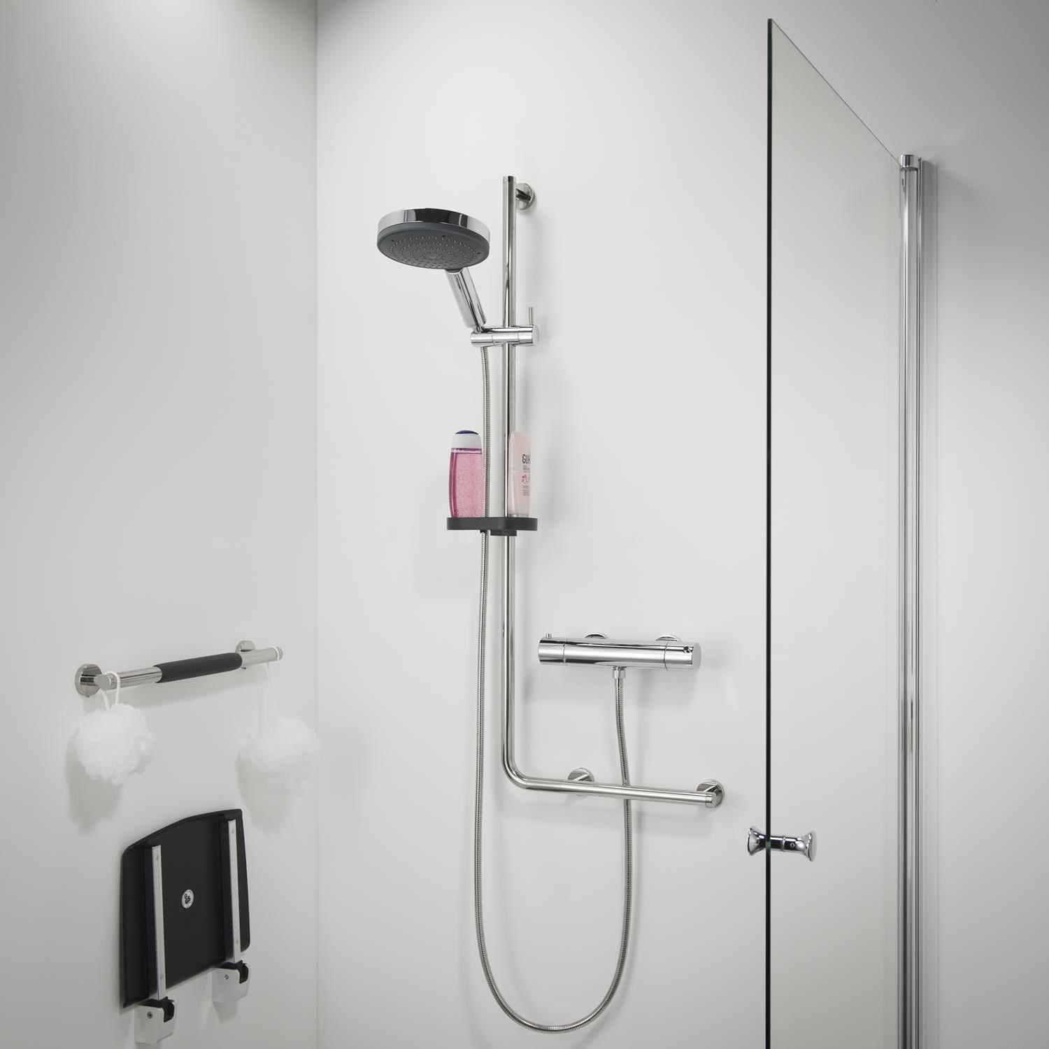 De Tiger opklapbare douchezitting uit de serie Boston Comfort en Safety is uitgevoerd in de kleur donkergrijs. De Tiger opklapbare douchezitting biedt extra ondersteuning en comfort tijdens het douchen. De opklapbare douchezitting kan gemakkelijk omhoog geklapt worden indien de douchezitting niet wordt gebruikt. De maximale belastbaarheid van de douchezitting bedraagt: 120 kg. De Boston Comfort en Safety serie biedt comfort verhogende producten aan die gezien mogen worden en bovendien naadloos aansluiten bij de overige producten uit het Boston concept. De hulpmiddelen uit de Boston Comfort en Safety serie zijn getest volgens de meest recente normen en richtlijnen.