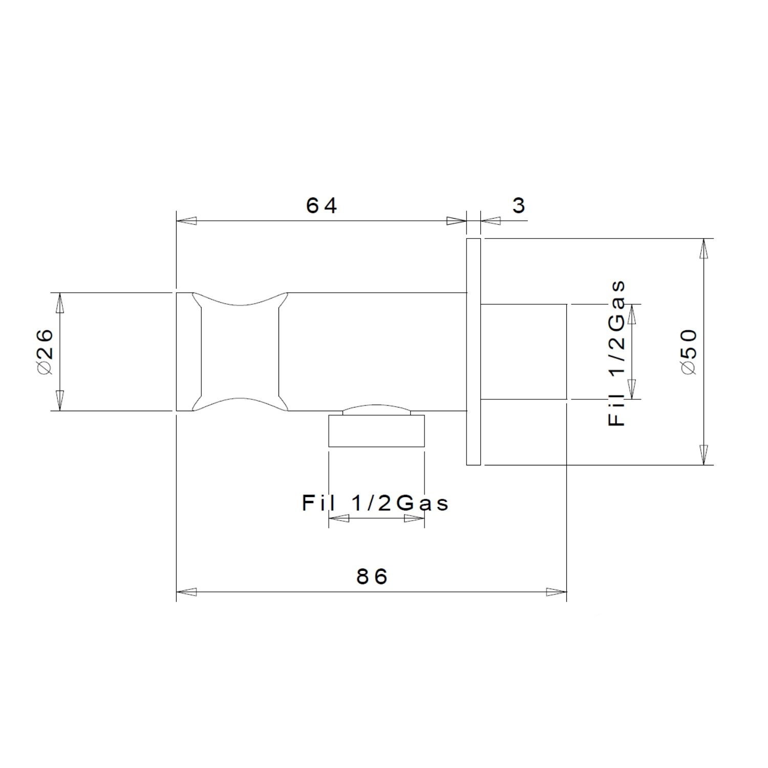 Onderaan zit een wateruitlaat waar de 1/2' doucheslang aansluiting aan bevestigd kan worden. Het water stroomt dan van de houder via de slang naar de handdouche.