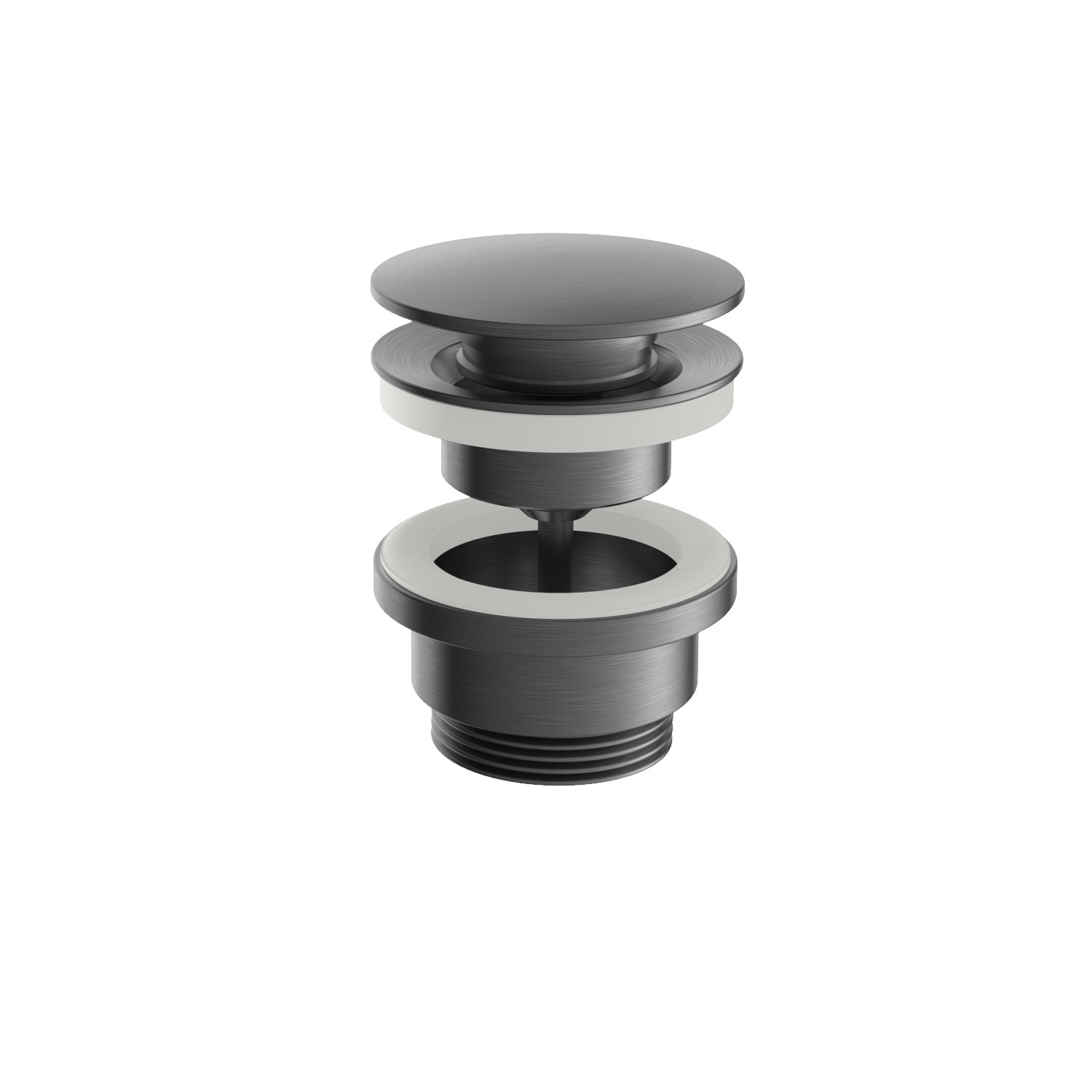 De Plug staat altijd open, heeft een diameter van 6.3 cm en heeft de kleur Geborsteld Gunmetal PVD.