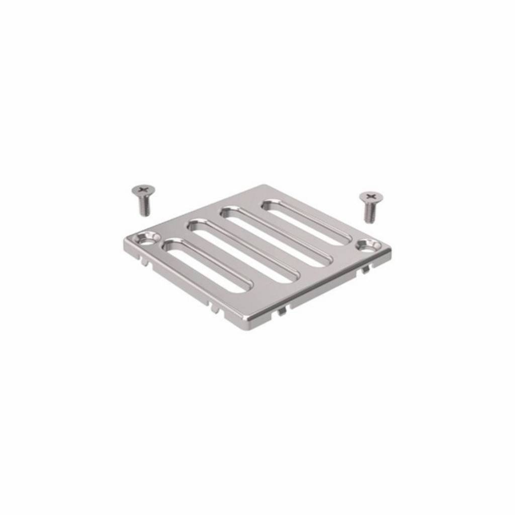 Geberit putrooster met sleufgaten, putrooster roestvaststaal (RVS), vierkant, schroefbevestiging, breedte rooster 71mm, lengte rooster 71mm, diameter rooster 100mm, sleuven.