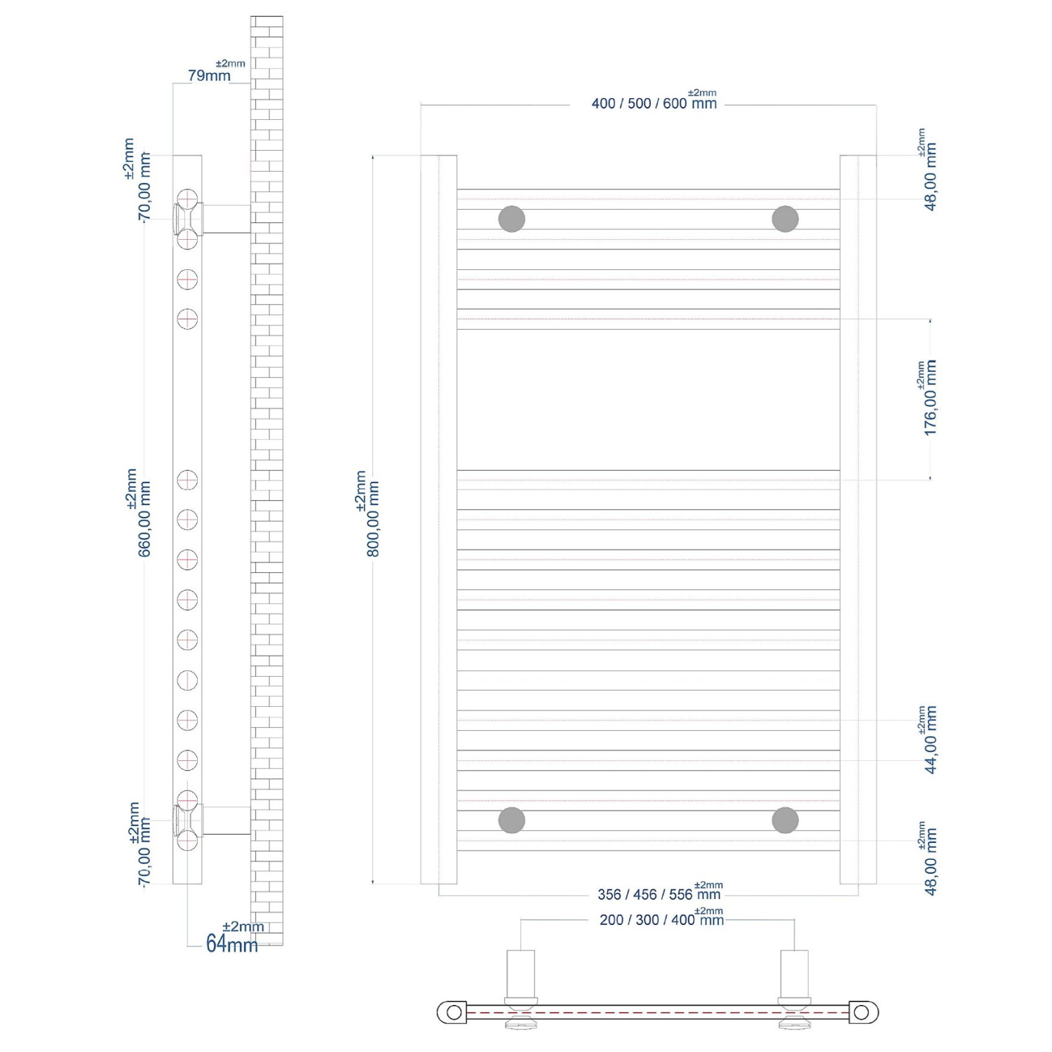 Dit model is verkrijgbaar in lengtes van 80 cm, 100 cm, 120 cm, 160 cm, 160 cm en 180 cm. Daarnaast is deze radiator verkrijgbaar in breedtes van 40 cm, 50 cm en 60 cm. Dus hoe dan ook is er een geschikt model voor uw badkamer. Let goed op dat u de juiste radiator besteld voor de grootte van uw badkamer. Zie de afbeeldingen voor meer uitleg over hoe u dit kan berekenen.