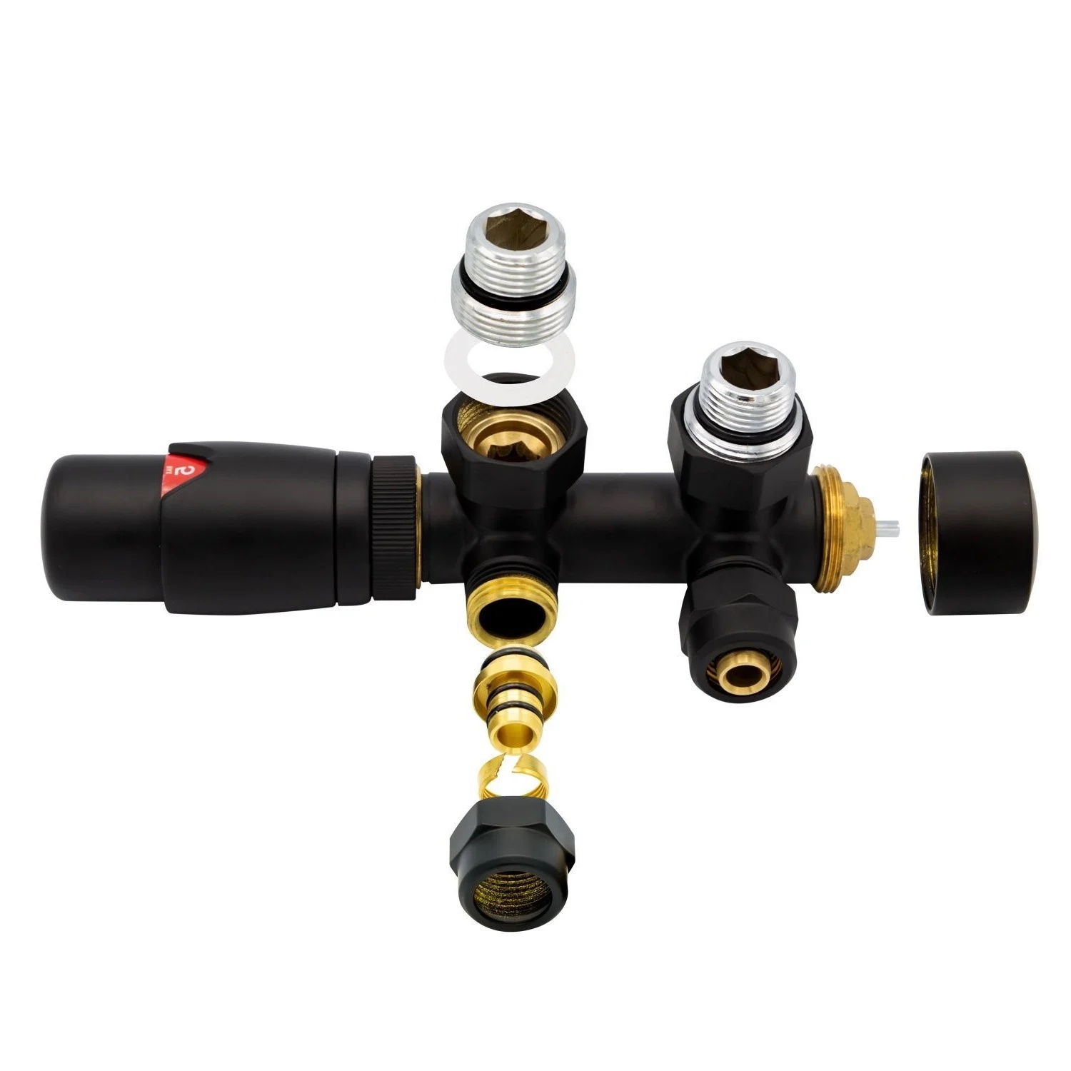 Deze radiator onderblok is uitstekend geschikt om te gebruiken in combinatie met een midden aansluiting bij een radiator. Het onderblok is gemaakt van metaal en kent een afwerking in de kleur mat zwart. Het betreft een haaks linkse uitvoering.