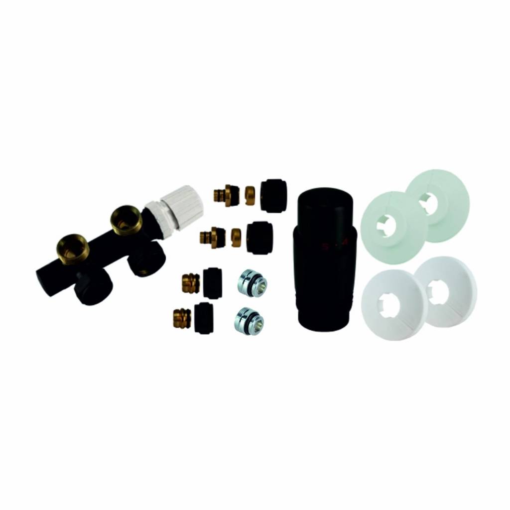 Het metaal is Mat Zwart en is bruikbaar voor alle designradiatoren met middenaansluiting. De uitvoering van de aansluitset is haaks Rechts en hierdoor is het gemakkelijk te bevestigen direct in de muur.