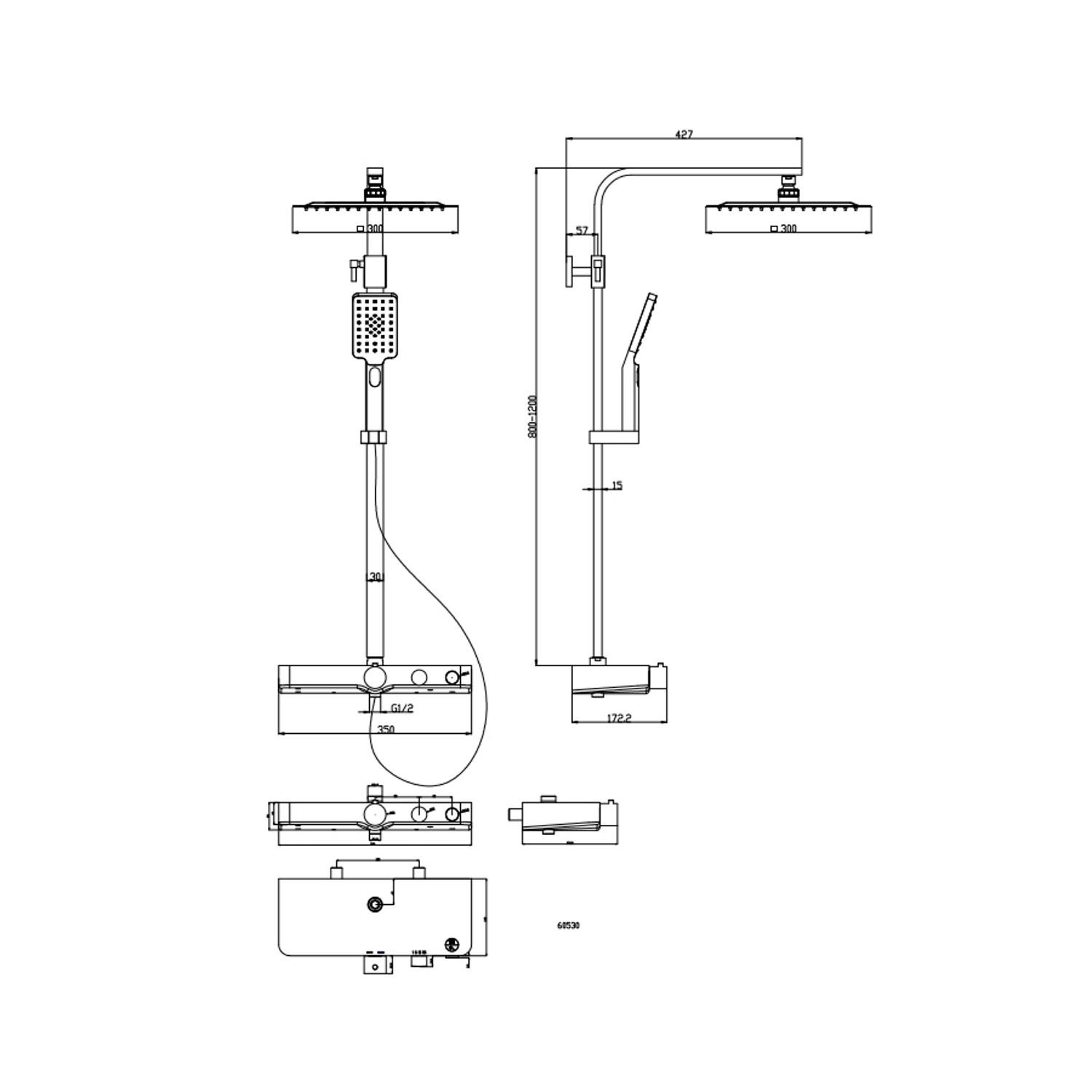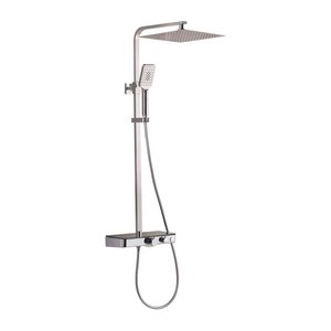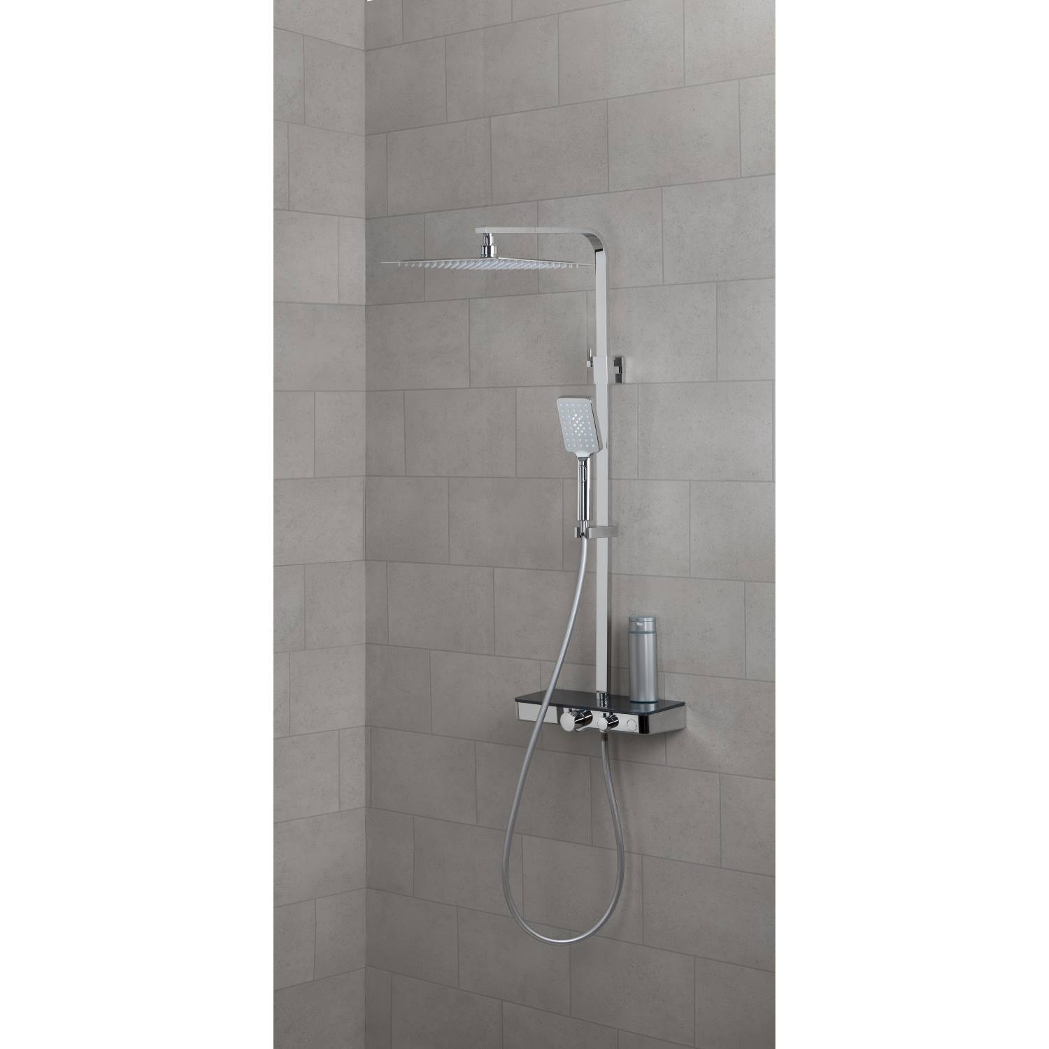 De Ocean regendouche opbouwset met een thermostatische kraan van het merk Schutte heeft een design uitstraling en past daardoor uitstekend in de moderne badkamer. De doucheset bevat een hoofddouche, een flexibele doucheslang, een glijstang met bevestigingsmateriaal, een handdouche en een geïntegreerd glazen planchet voor het opbergen van uw douchegerei. De handdouche is uitgerust met drie standen. Verder bevat de kraan een veiligheidsstop op 38 graden.