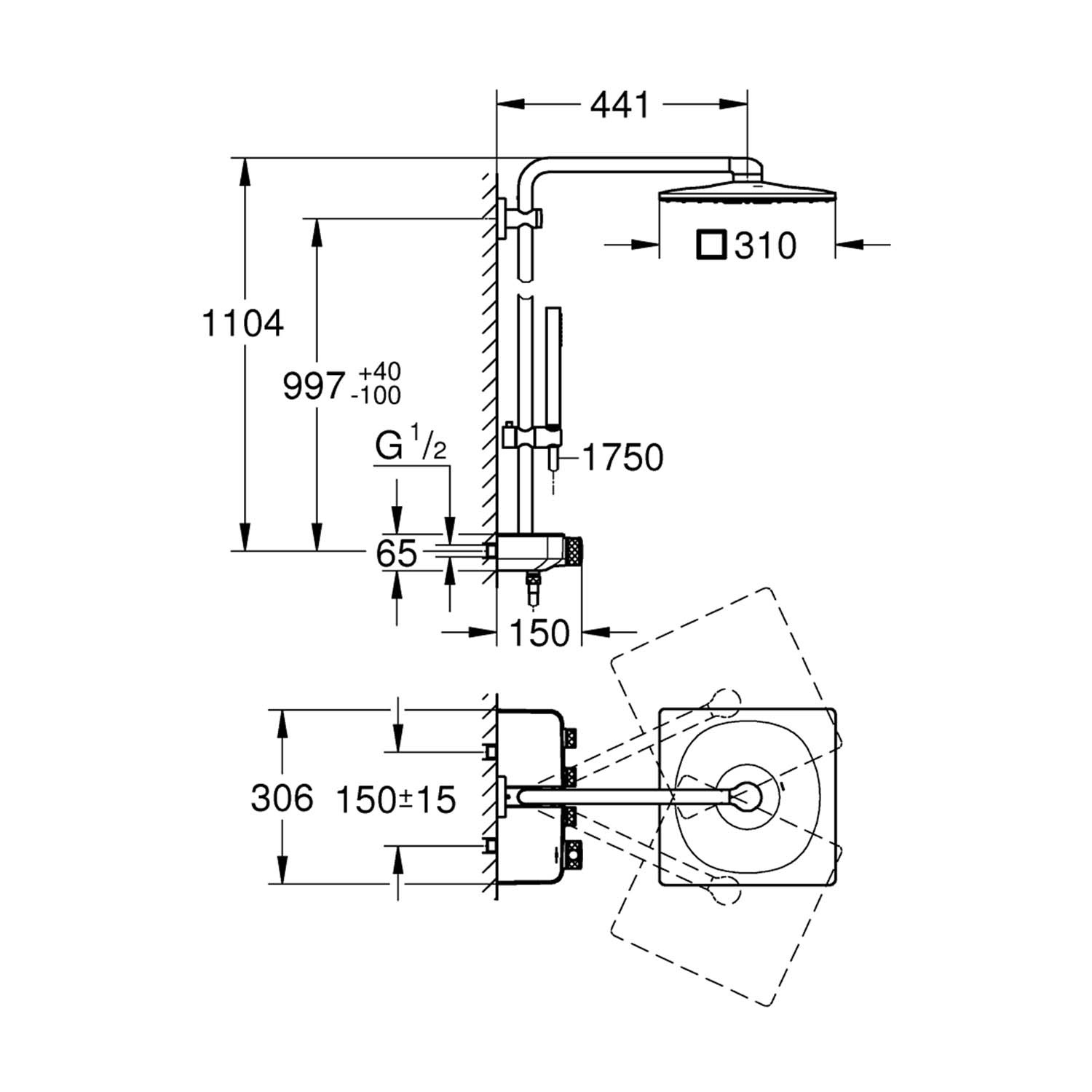 De regendouche is voorzien van Grohe DreamSpray technologie wat er voor zorgt dat het water gelijkmatig verdeeld word over ieder sproeigaatje. Dit gebeurd op iedere stand. Dankzij de siliconen SpeedClean sproeigaatjes is schoonmaken zo gebeurd. Kalkaanslag is met een simpele veeg van de douchekop af. Met de Grohe SafeStop kunt u de maximumtemperatuur van 38 graden instellen en de SafeStop Plus biedt een extra optie voor een limiet van 43 graden. Dit zorgt voor extra veiligheid tijdens het douchen.