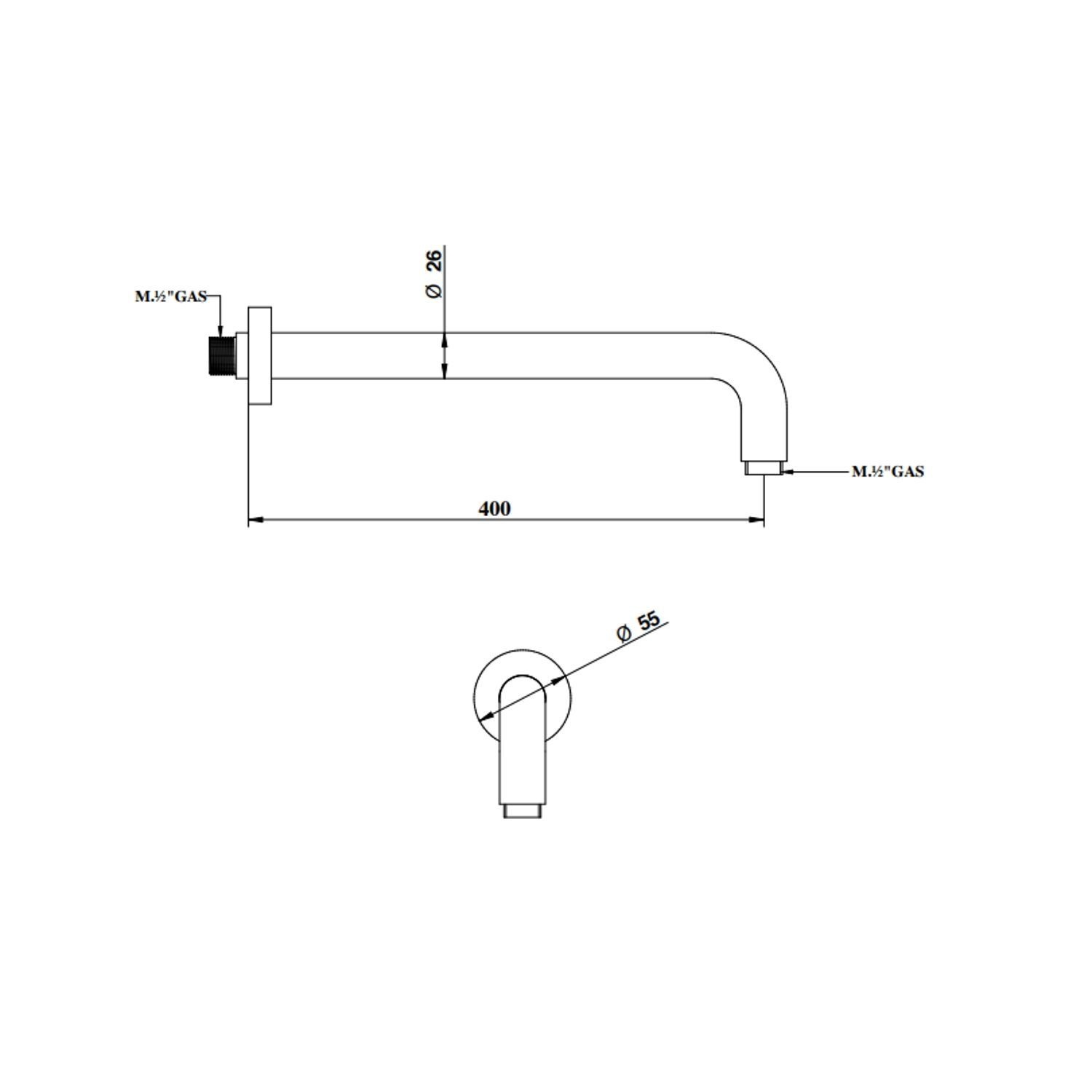 Deze set bestaat uit een hoofddouche, handdouche met handdouchehouder, een muurarm en een thermostaatkraan met afdekplaat. De afdekplaat heeft een diameter van 18,5 cm. De hoofddouche heeft een afmeting van 20 cm. De handdouche is 19 cm lang.