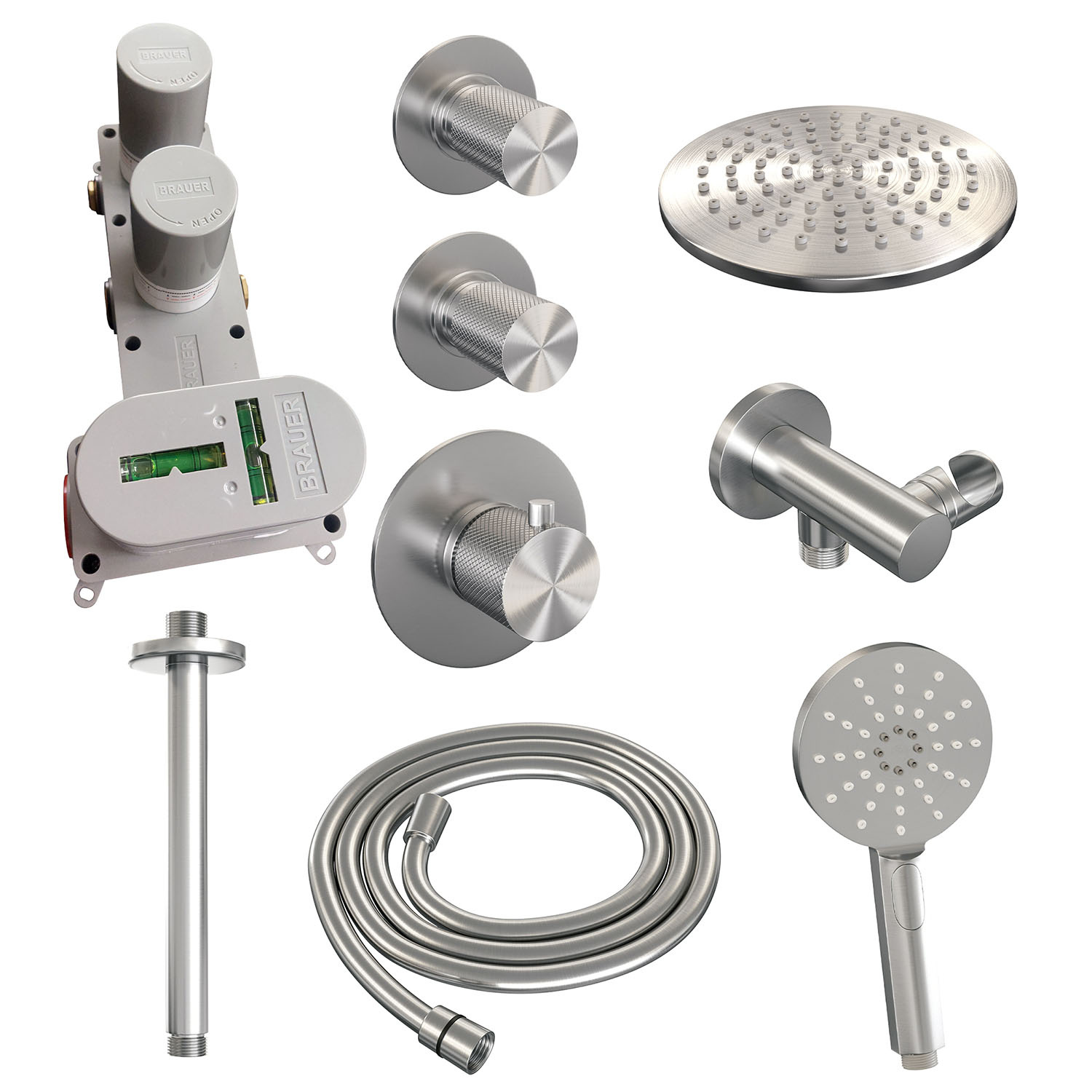 Deze set heeft een luxueuze uitstraling door de geborstelde RVSkleur. Zo kunt u heerlijk genieten van uw douche in een prachtige badkamer.
