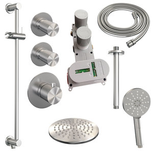 Deze set heeft een luxueuze uitstraling door de geborstelde RVSkleur. Zo kunt u heerlijk genieten van uw douche in een prachtige badkamer.