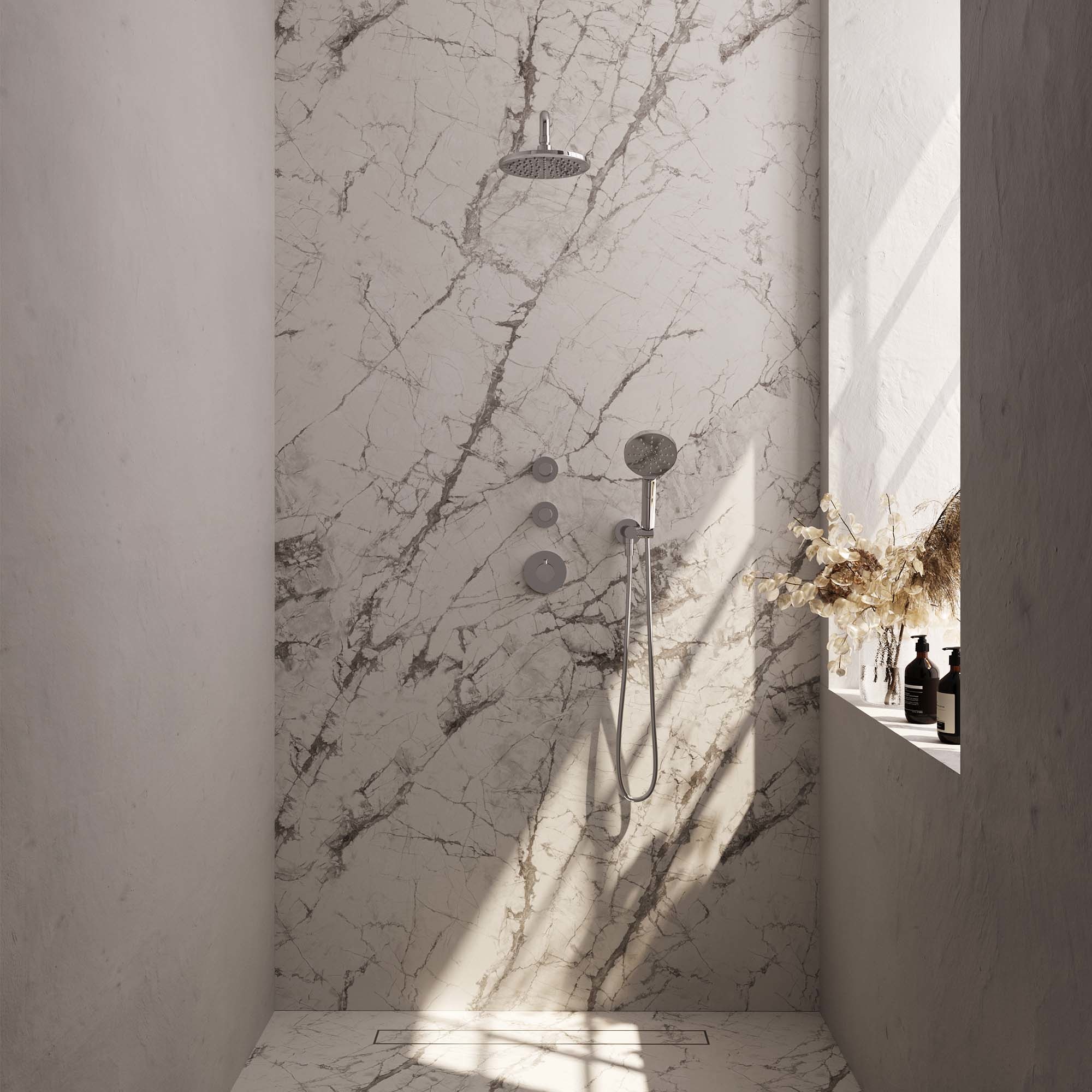 Deze set heeft een luxueuze uitstraling door de geborstelde Chromekleur. Zo kunt u heerlijk genieten van uw douche in een prachtige badkamer.