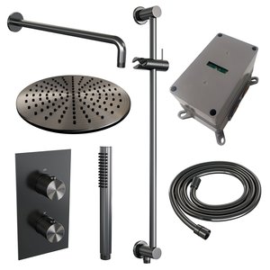 Deze set heeft een luxueuze uitstraling door de geborstelde Gunmetalkleur. Zo kunt u heerlijk genieten van uw douche in een prachtige badkamer.