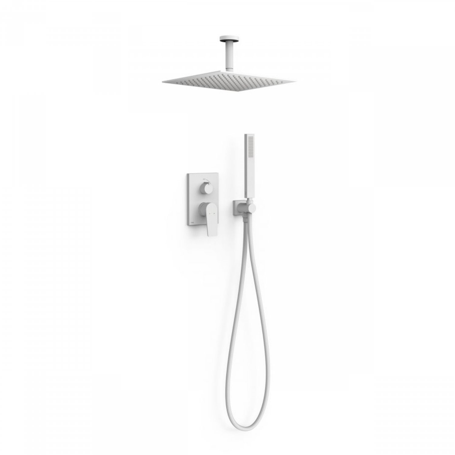 De hoofddouche heeft diameter van 30 cm. De plafondarm is 13,9 cm lang. De afdekplaat heeft een diameter van 16,8x11,8 cm. Met de hendel op de afdekplaat draait u de kraan open en dicht en stelt u de gewenste temperatuur in door warm en koud water met elkaar te mengen. Met de omstelkop boven de hendel switcht u tussen de uitlopen. De sproeier is van roestvrijstaal en roest dus ook niet. De douchekoppen zijn gemakkelijk schoon te houden. U verwijdert de kalk simpelweg door met uw vinger over de nopjes heen te wrijven. De rapid box maakt de installatie gemakkelijk en snel. Deze set heeft de kleur mat wit.