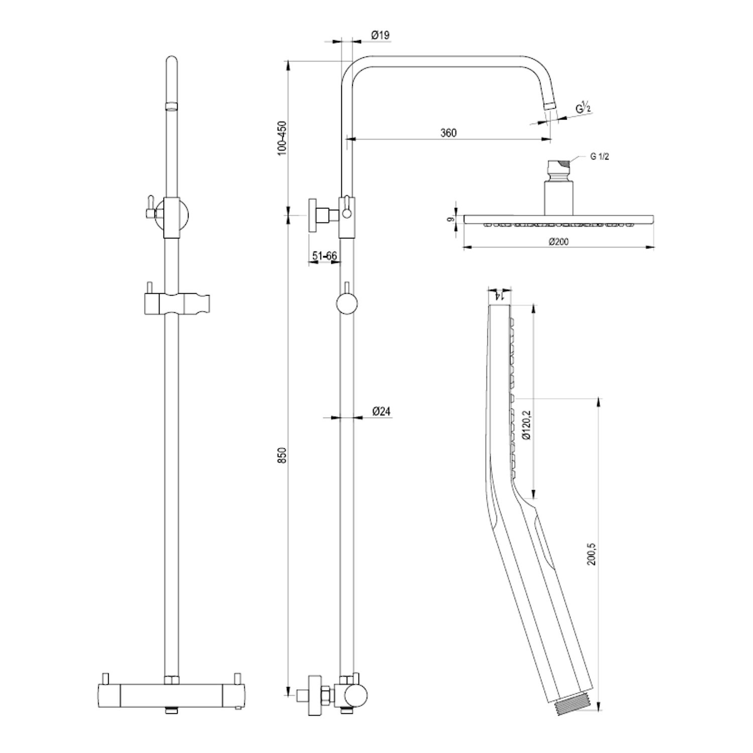 Deze set bestaat uit een complete opbouw regendoucheset met thermostaatkraan, handdouche (met 3 standen) en regendouche van 20 cm. De thermostaatkraan is eenvoudig te bedienen. Met de linkerdraaiknop bepaalt u de gewenste douchestand en daarmee wisselt u tussen hoofd- en handdouche. Met de rechter draaiknop stelt u de gewenste watertemperatuur in. Deze knop is voorzien van temperatuurblokkering bij 38°C, zodat de kraan voor iedereen veilig te gebruiken is. De glijstang is verstelbaar tussen 95 en 140 cm