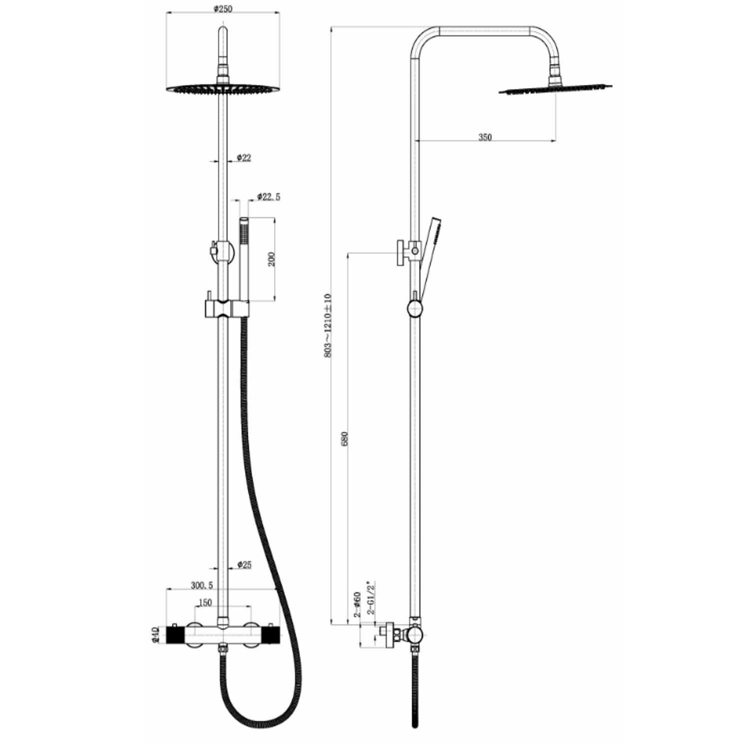Deze Opbouw Regendoucheset is van het merk Wiesbaden en komt uit de serie Ribbd. De fraaie regendoucheset is van messing en de kleur is grijs gunmetal. Hij is in hoogte verstelbaar en de set bestaat uit een regendouche en een handdouche. De afmeting van de hoofddouche is 25 cm. De fabrieksgarantie voor de set bedraagt 2 jaar.