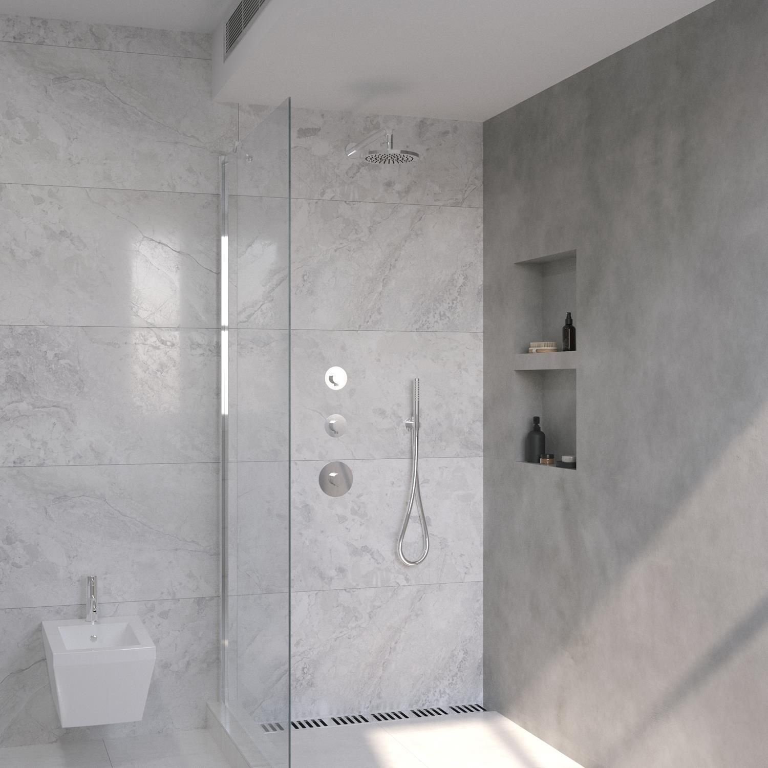 Een stijlvolle inbouw regendoucheset voor in uw doucheruimte. Met de set van Wiesbaden Dreams kunt u u badkamer compleet maken. Combineer de chromen douchekraanset met een douchewand met chromen accenten en maak daarmee uw badkamer compleet. Deze luxe doucheset is precies wat uw badkamer nodig heeft.