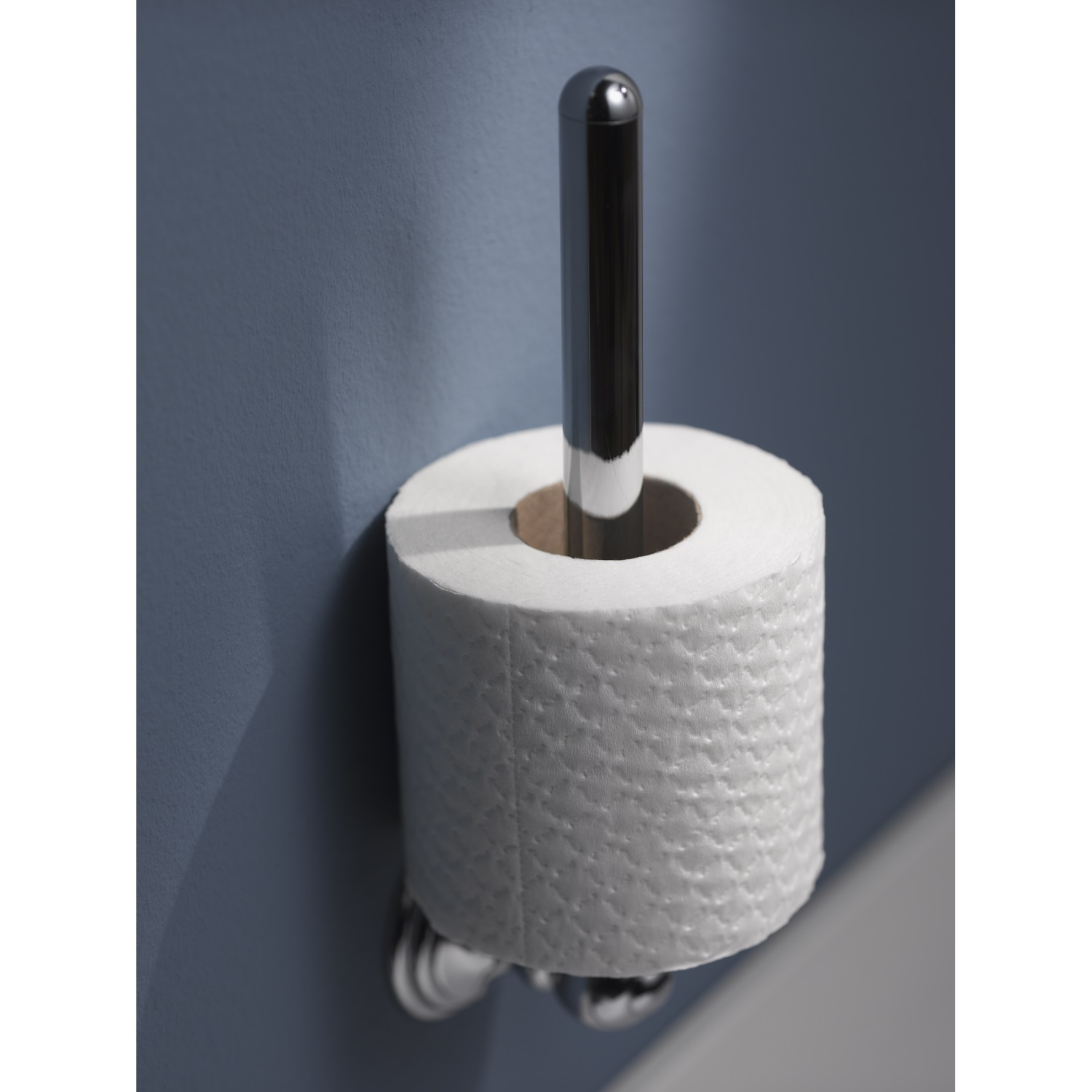 Deze reserverolhouder geeft uw toiletruimte een aangenaam nostalgisch tintje. U hangt hem op aan de wand: daardoor blijft uw vloer mooi vrij. De houder is geschikt voor twee rollen.