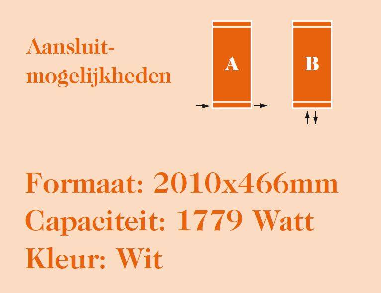 1779 watt (volgens EN-442 Norm)<br/> 24 elementen (12 voor en 12 achter)<br/> 2 jaar garantie<br/> Kleur: RAL 9010 wit<br/> Inclusief ophangset<br/> inclusief midden/onder aansluiting (h-h 50mm)
