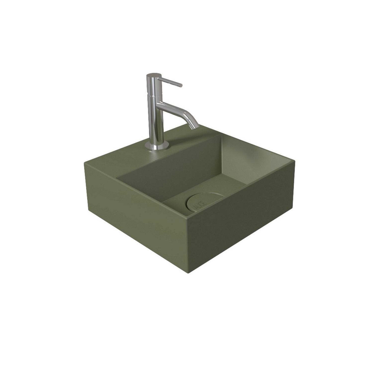 De Salenzi fonteinbak heeft een matte uitstraling. Door de speciale eigenschappen van het keramiek is het ontzettend sterk en daarnaast extra hygiënisch. Het keramische mengsel wordt gegoten in de gipsen mal. De opbouw wastafel wordt gebakken op een temperatuur van 1250 graden, hierdoor ontstaand de prachtige vorm. De unieke mat groene kleur is de trend in uw badkamer.