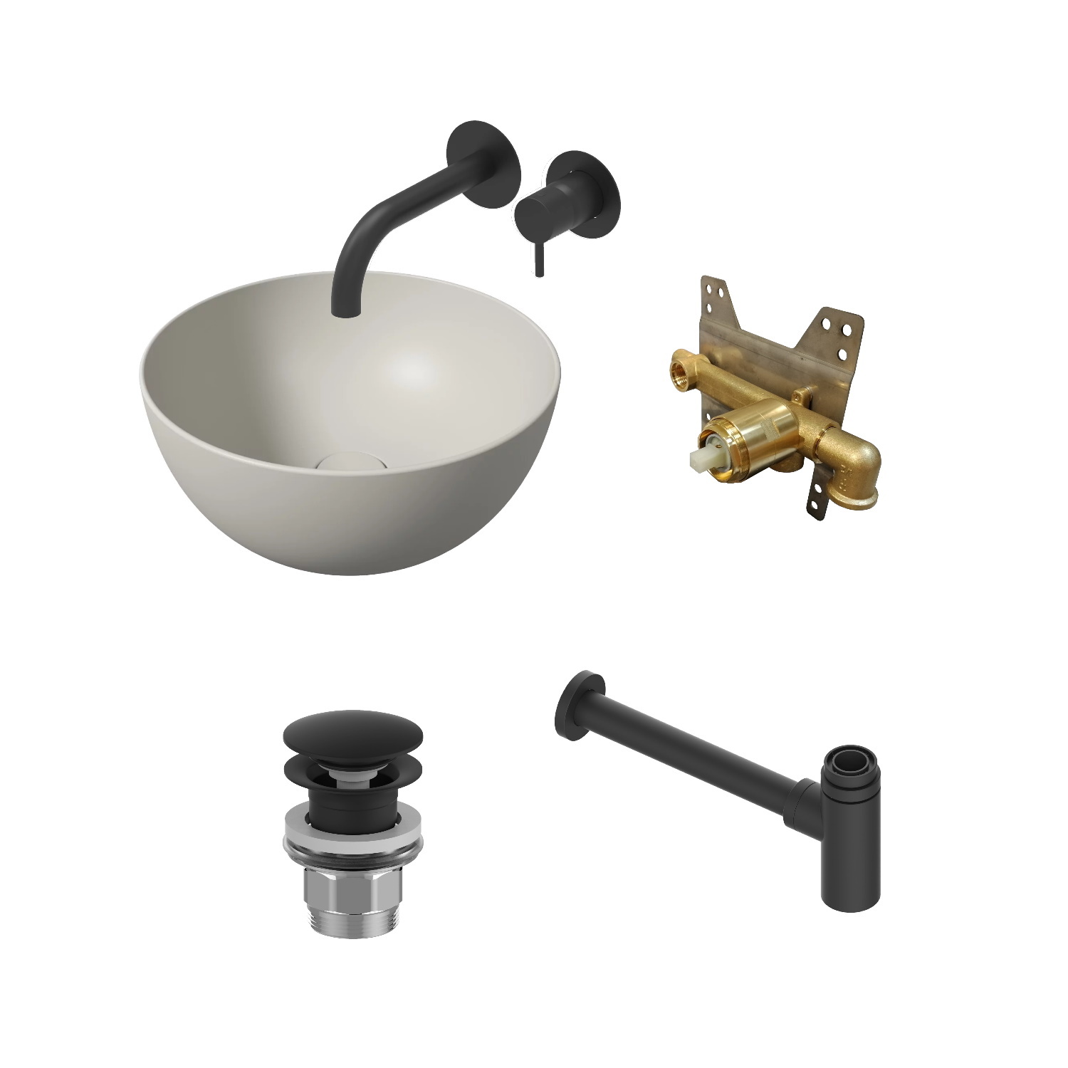 Een complete waskomset van het merk Salenzi inclusief waskom, wastafelkraan, inbouwdeel, clickwaste (optioneel) en sifon. De speciale eigenschappen van het keramiek maakt de waskom van Salenzi ontzettend sterk en daarnaast extra hygiënisch. Het keramische mengsel wordt gegoten in de gipsen mal. De opbouw wastafelkom wordt gebakken op een temperatuur van 1250 graden, hierdoor ontstaat de prachtige vorm.