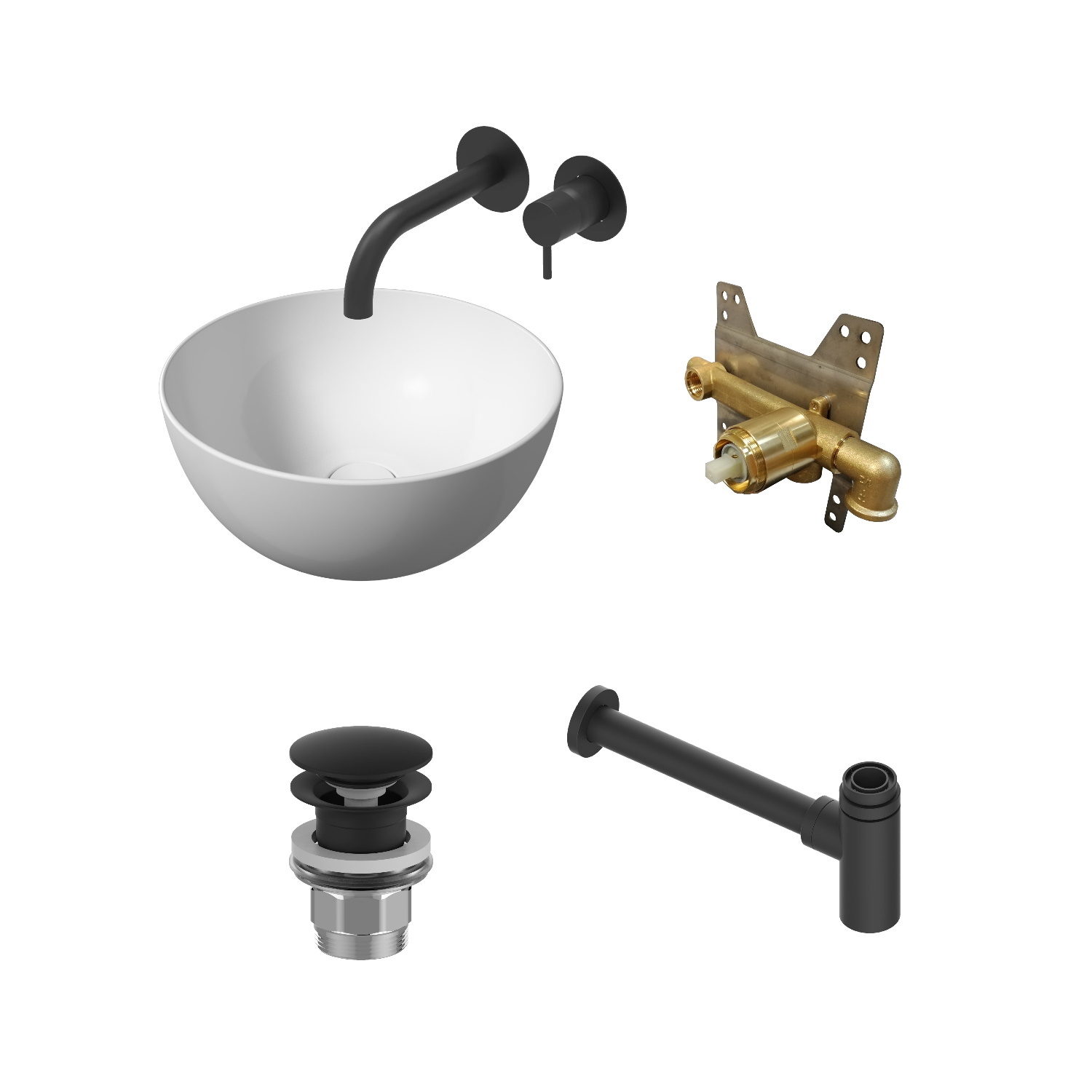 Een complete waskomset van het merk Salenzi inclusief waskom, wastafelkraan, inbouwdeel, clickwaste (optioneel) en sifon. De speciale eigenschappen van het keramiek maakt de waskom van Salenzi ontzettend sterk en daarnaast extra hygiënisch. Het keramische mengsel wordt gegoten in de gipsen mal. De opbouw wastafelkom wordt gebakken op een temperatuur van 1250 graden, hierdoor ontstaat de prachtige vorm.