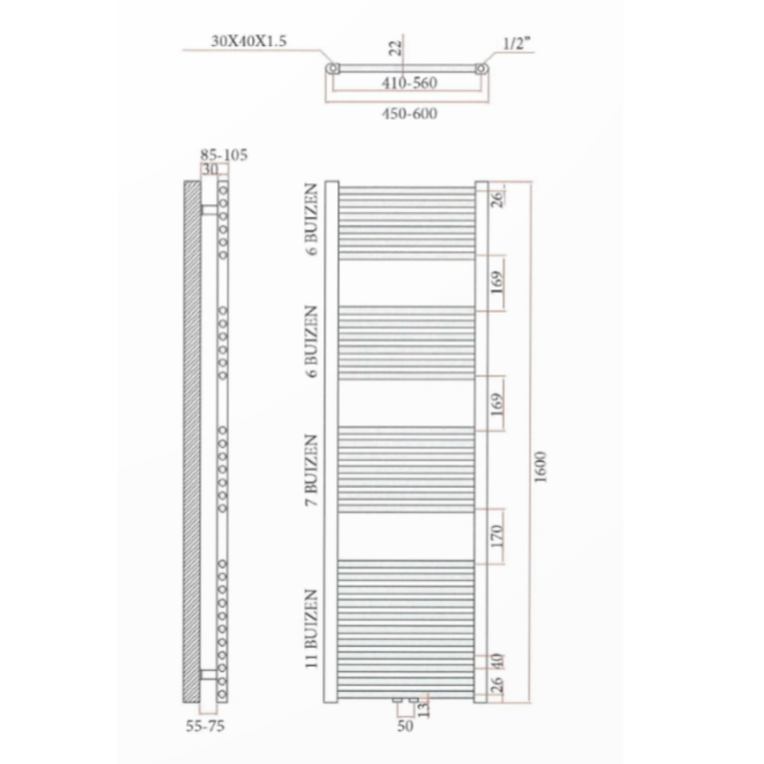 Een populair model is de Sanicare radiator met midden/onder aansluiting met een hoh afstand van 5 cm. Deze radiator heeft als groot voordeel dat dankzij de onderaansluiting de leidingen bijna niet zichtbaar zijn. Hierdoor komt de stijl en vormgeving van de radiator nog beter tot zijn recht. Deze radiator kan ook nog gewoon aangesloten worden op de reguliere aansluitpunten. Er zijn dus 4 standaard aansluitpunten en 2 extra aansluitpunten midden/onder. Deze Sanicare design radiator met middenaansluiting van 160 cm. hoog (45 of 60 cm. breed), wordt ook wel een buisradiator of handdoekradiator genoemd. Deze radiator bestaat uit buizen met ruime plaats om uw handdoeken op te hangen en ze warm te maken.