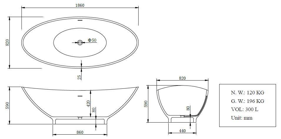 Dit bad kan vrijstaand in de badkamer geplaatst worden