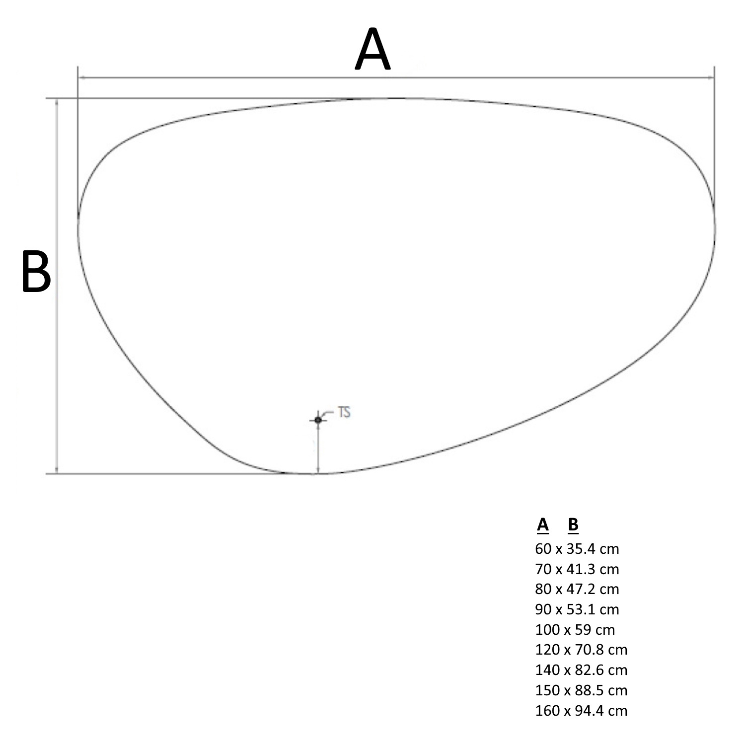 De spiegel is verkrijgbaar in verschillende breedtes en heeft een glasdikte van 4 mm. De maten zijn als volgt;