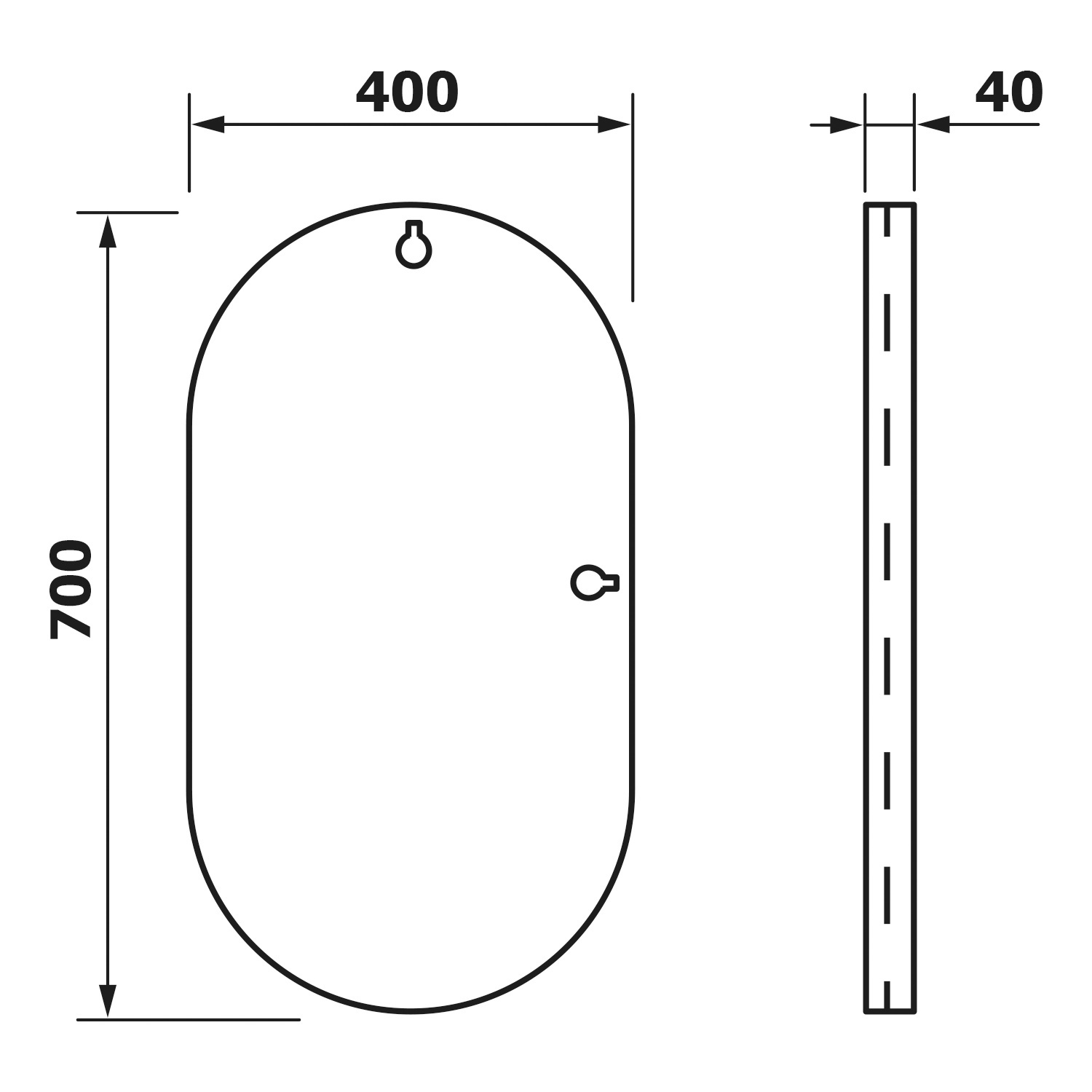 De hoogte van de spiegel is 70 cm. De spiegel is 40 cm breed. Daarnaast is de spiegel 4 cm diep. De rand van de spiegel is gemaakt van aluminium. Vanwege de dikte van het frame van deze spiegel, is uw spiegel geschikt voor spiegelverwarming. Spiegelverwarming is echter niet inbegrepen bij dit product.