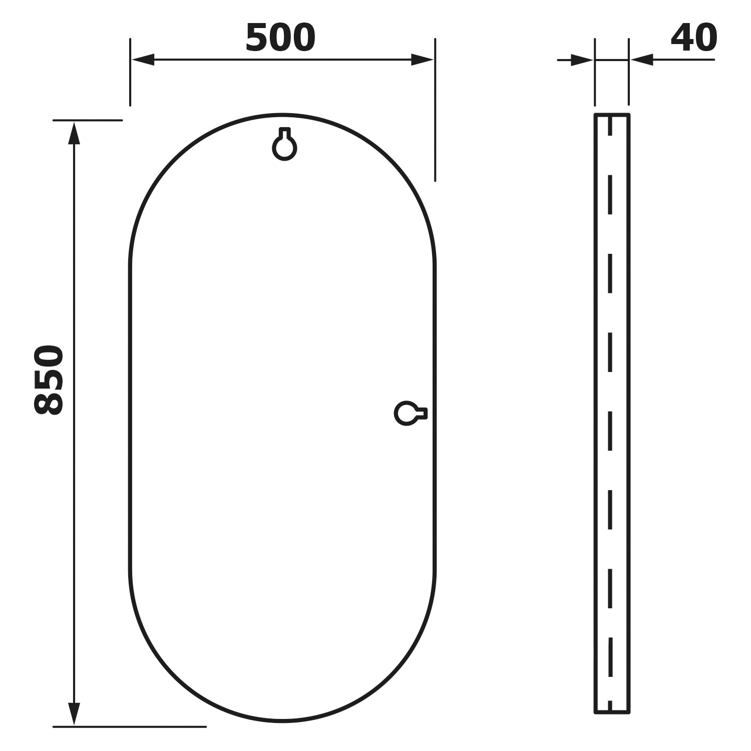 De hoogte van de spiegel is 85 cm. De spiegel is 50 cm breed. Daarnaast is de spiegel 4 cm diep. De rand van de spiegel is gemaakt van aluminium. Vanwege de dikte van het frame van deze spiegel, is uw spiegel geschikt voor spiegelverwarming. Spiegelverwarming is echter niet inbegrepen bij dit product.