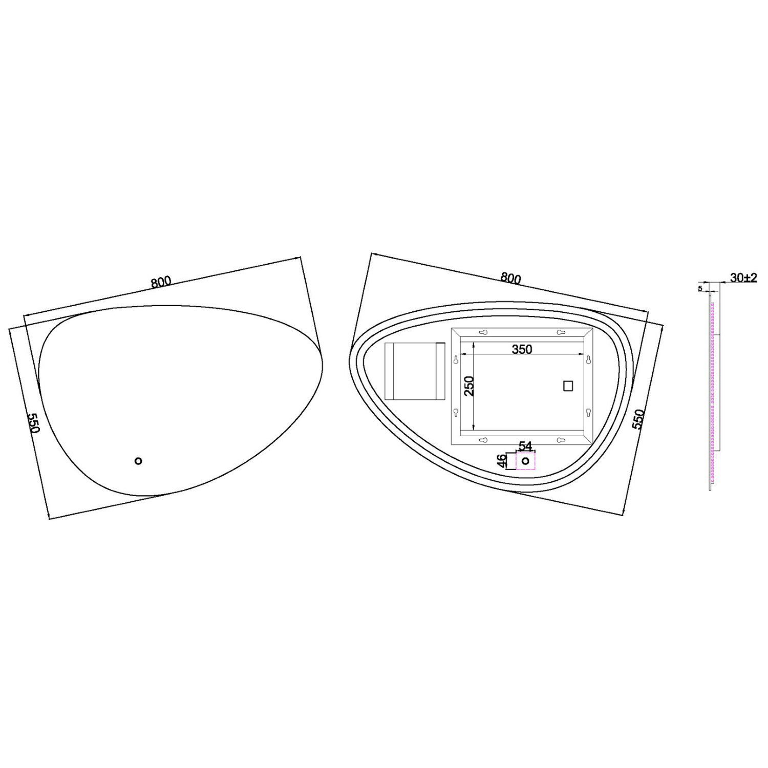 De badkamerspiegel heeft een unieke organische vorm en heeft een breedte van 80 cm.
