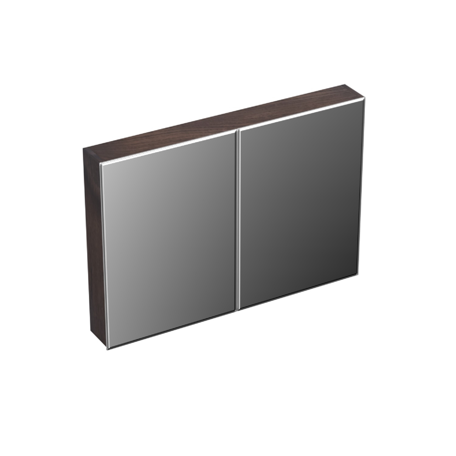 De kast is 100 cm breed, 68.8 cm hoog en 12,5 diep. Hij is voorzien van 2 greeploze deuren met een tweezijdige spiegel. Aan de binnenkant van de kast zitten twee legplanken en een stopcontact en schakelaar. De prachtige massief eiken kast is voorzien van een Charcoal afwerking wat de kast een zeer luxe uitstraling en warme uitstraling geeft. Combineer deze spiegelkast met een badmeubel in dezelfde kleur voor een mooie eenheid.
