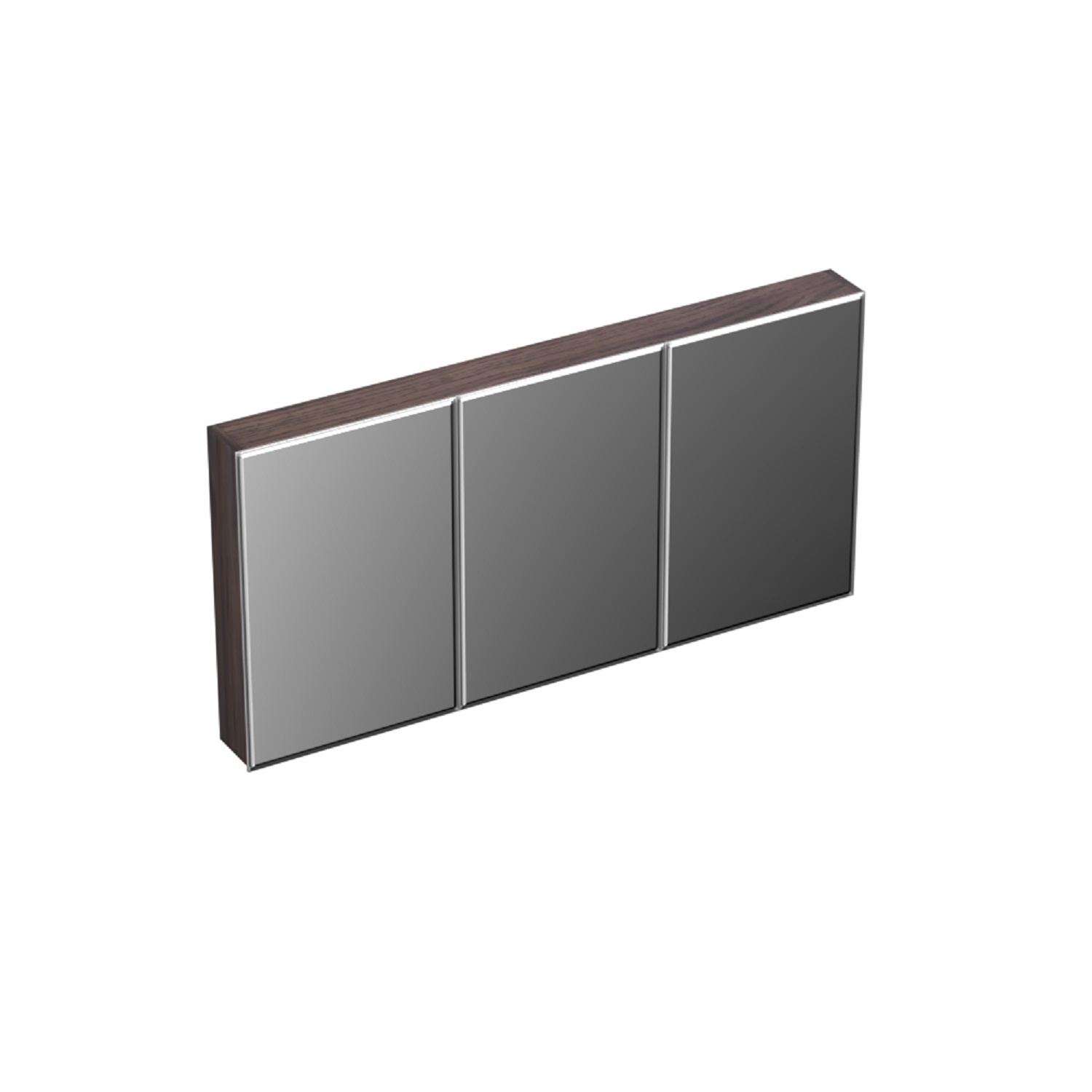 De kast is 140 cm breed, 68.8 cm hoog en 12,5 diep. Hij is voorzien van 3 greeploze deuren met een tweezijdige spiegel. Aan de binnenkant van de kast zitten twee legplanken en een stopcontact en schakelaar. De prachtige massief eiken kast is voorzien van een Charcoal afwerking wat de kast een zeer luxe uitstraling en warme uitstraling geeft. Combineer deze spiegelkast met een badmeubel in dezelfde kleur voor een mooie eenheid.