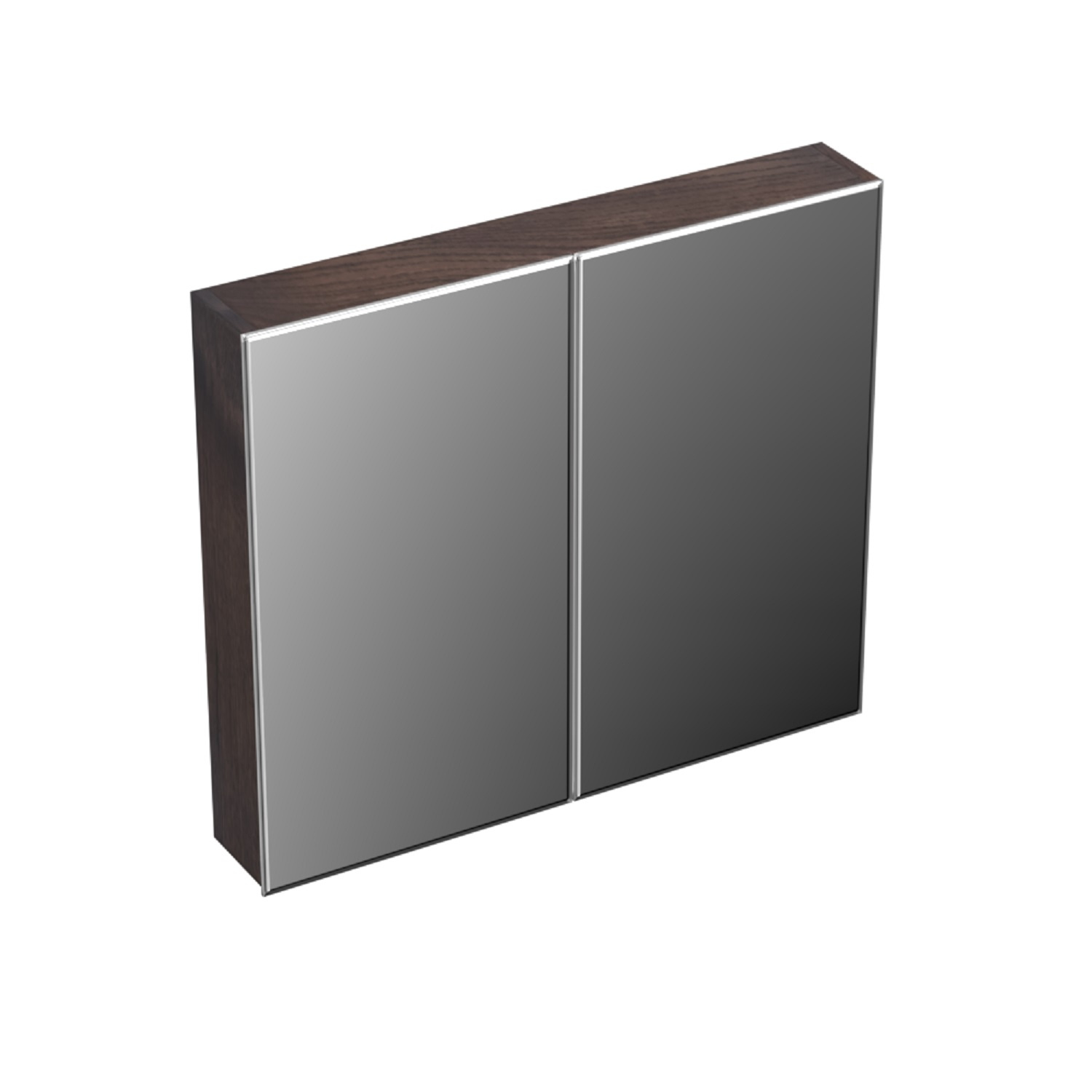 De kast is 80 cm breed, 68.8 cm hoog en 12,5 diep. Hij is voorzien van twee gelijken deuren voorzien van spiegels. Aan de binnenkant van de kast zitten twee legplanken en een stopcontact en schakelaar. De prachtige massief eiken is voorzien van een Charcoal afwerking wat de kast een zeer luxe uitstraling en warme uitstraling geeft. Combineer deze spiegelkast met een badmeubel in dezelfde kleur voor een mooie eenheid.