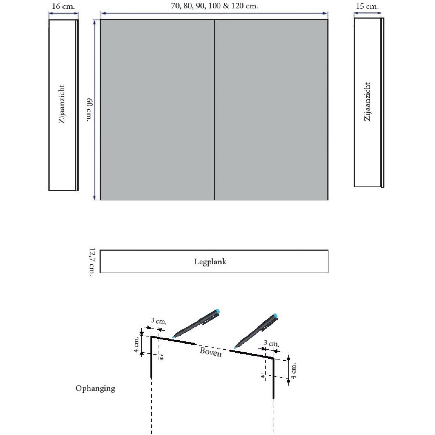 De gehele voorkant van dit product is voorzien van een spiegel. Rond het chroom vindt u een spiegeldeurgreepje en in de kolom- en/of spiegelkast kan optioneel een Sanicare Contactdoos/schakelaar geplaatst worden. Bovendien valt deze badkamerspiegel prima te combineren met diverse types Sanicare design verlichting. De badkamerspiegel kent een breedte 120 cm, een hoogte van 60 cm en een diepte van 15 cm.