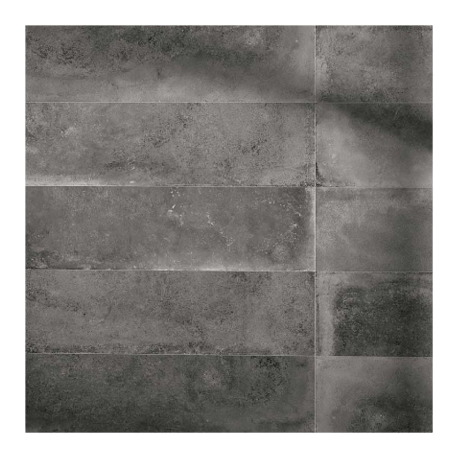 De grote antraciete stroken zijn maar liefst 10 mm dik. De robuuste uitstraling heeft de Backstage Graphite te danken aan de styling van de tegel. Niet egaal van kleur maar gemêleerd met verschillende antraciete kleuren.