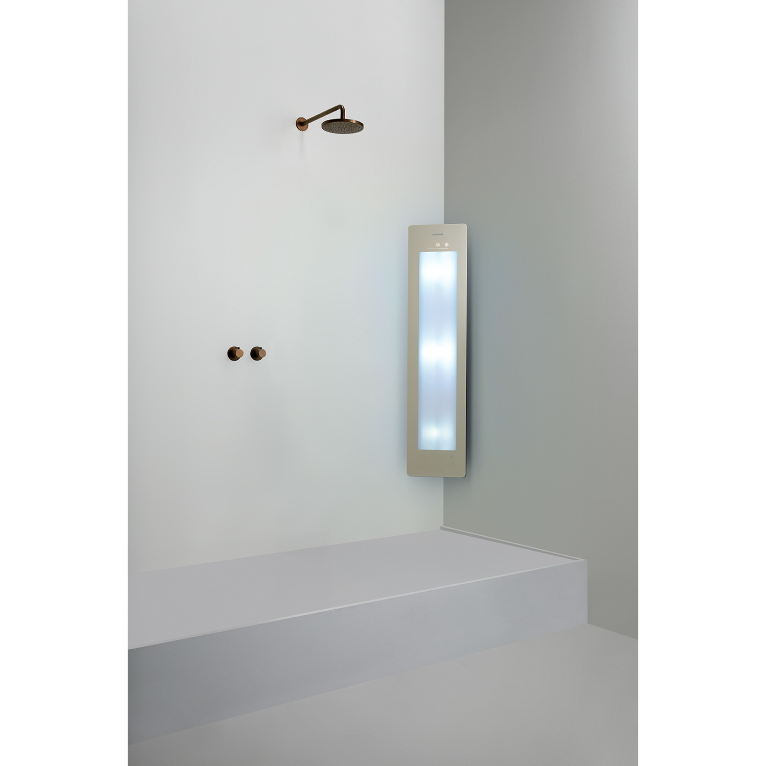 Maak de positieve effecten van zonlicht onderdeel van uw dagelijkse doucheritueel. Sunshower bied het hele jaar door een slimme dosis zonlicht met verwarmend infrarood. Zonlicht voedt het lichaam en zorgt voor een fitter, vitaler én energieker gevoel. Infrarood biedt veel voordelen voor het lichaam. Het geeft een heerlijk ontspannen gevoel, zorgt voor een betere bloedsomloop en bied verlichting bij pijn. Dankzij het modulaire systeem en installatiegemak is deze Sunshower geschikt voor elke badkamer. De sunshower kan namelijk op meerdere manieren worden gemonteerd: bouw de sunshower in de muur, hang het op aan een vlakke muur, of hang het in een douchehoek. Dankzij de touchscreen met bewegingssensor is de douche bovendien zeer eenvoudig te bedienen.