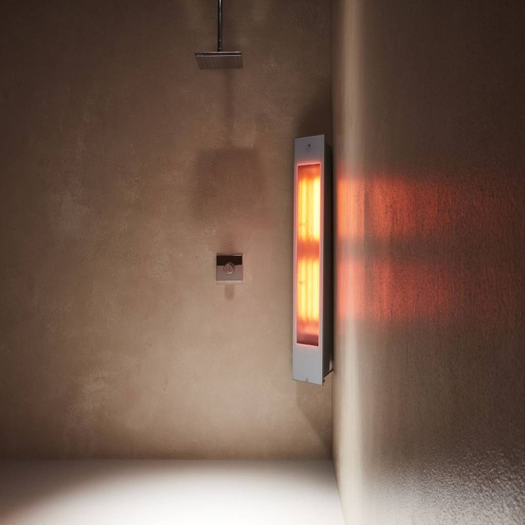 De Sunshower Solo is iets kleiner dan de Sunshower Combi en voorzien van twee infraroodlampen van elk 750W. Elegant in de hoek te plaatsen als zwevend element. Voorzien van een gezandstraalde glasplaat in een slank aluminium frame.