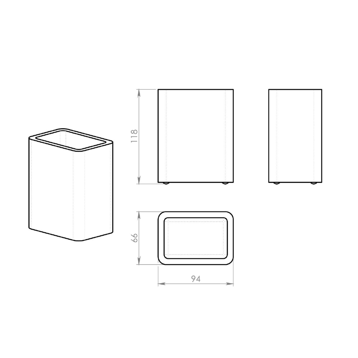 De tandenborstelhouder heeft een hoogte van 11.8 cm, een breedte van 9.4 cm en een diepte van 6.6 cm.