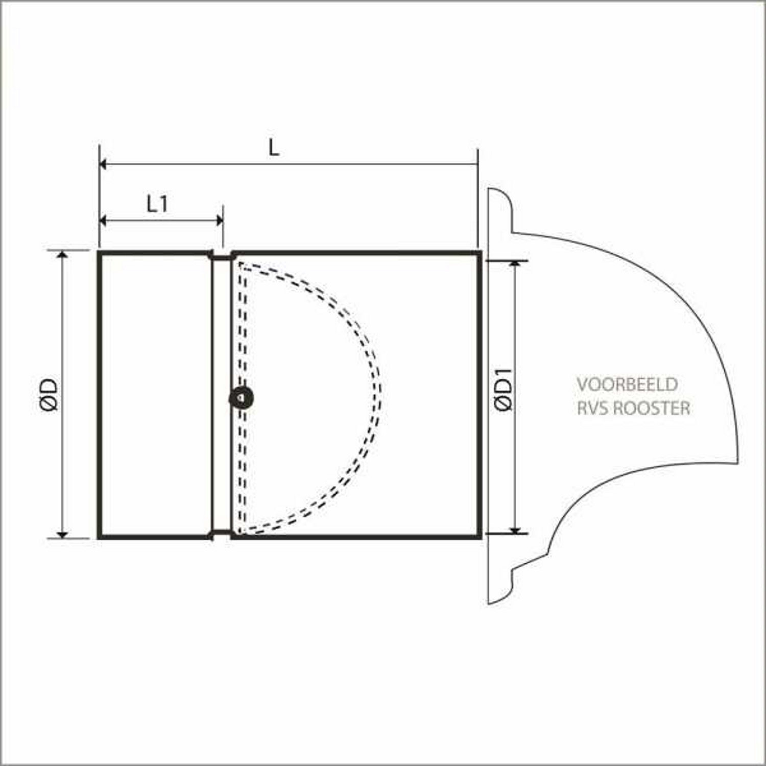Speciaal ontwikkeld voor het compleet assortiment WEHA RVS en WEHA Retro ventilatieroosters, montagebus met vlinderklep die automatisch opent en sluit d.m.v. de luchtdruk.