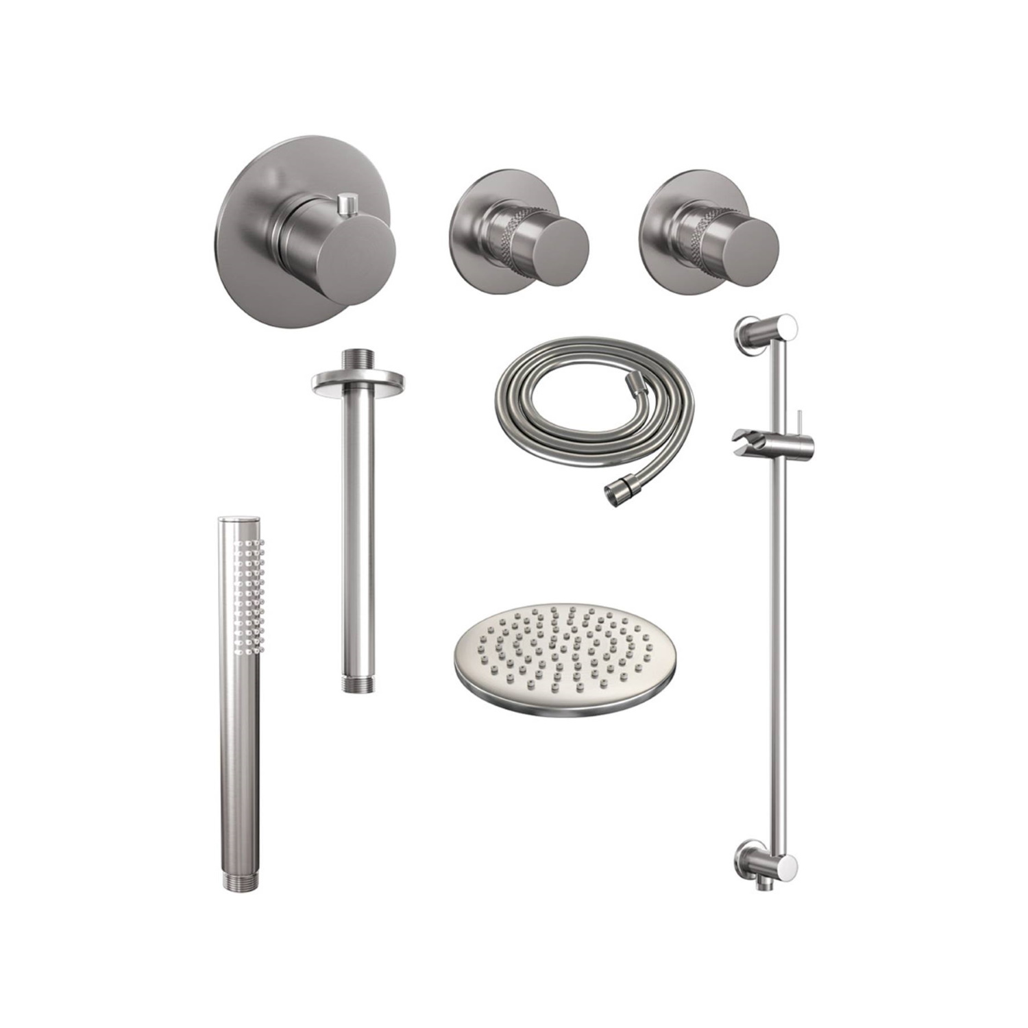 De Brauer inbouwkraan 6.5cm inbouwdiepte met 2 stopkranen ronde knoppen en ronde rozetten.