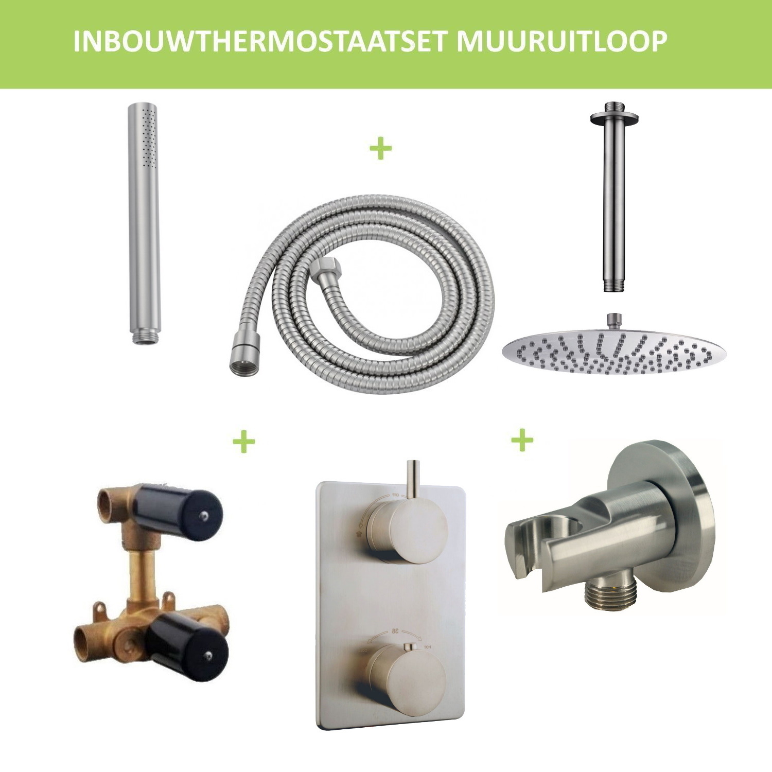 Deze inbouwthermostaatset van het merk Aqua Splash is een absoluut plaatje en bevat alle onderdelen voor een fijne douche! Het betreft een complete regendoucheset met een thermostatische kraan. De inbouwset bestaat uit een hoofddouche, plafonduitloop, afbouwdeel inbouwthermostaat, handdouche, wandhouder, doucheslang en douchethermostaat. De bedieningsplaat beschikt over twee knoppen waarmee de douche aan- en uit wordt gezet. Ook is er een omstelknop aanwezig om van hoofddouche naar handdouche te switchen en andersom. De set heeft een prachtige geborstelde RVS afwerking.