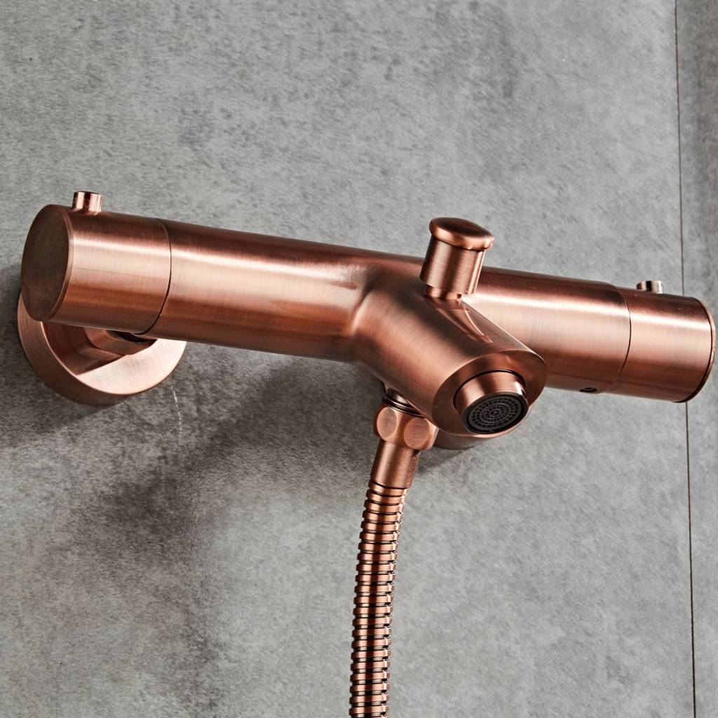 De Copper badkraan is een thermostatische kraan met een beveiliging op 38 graden.